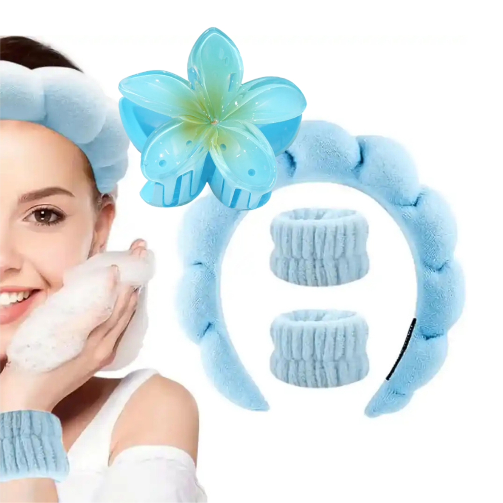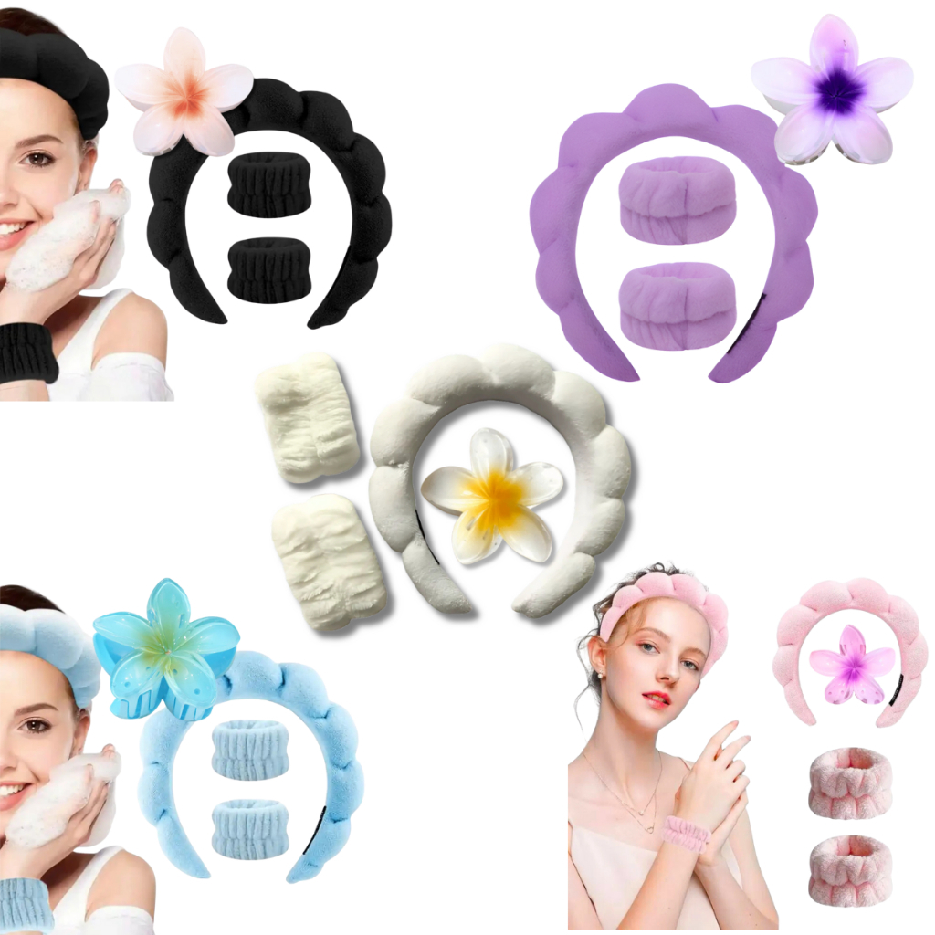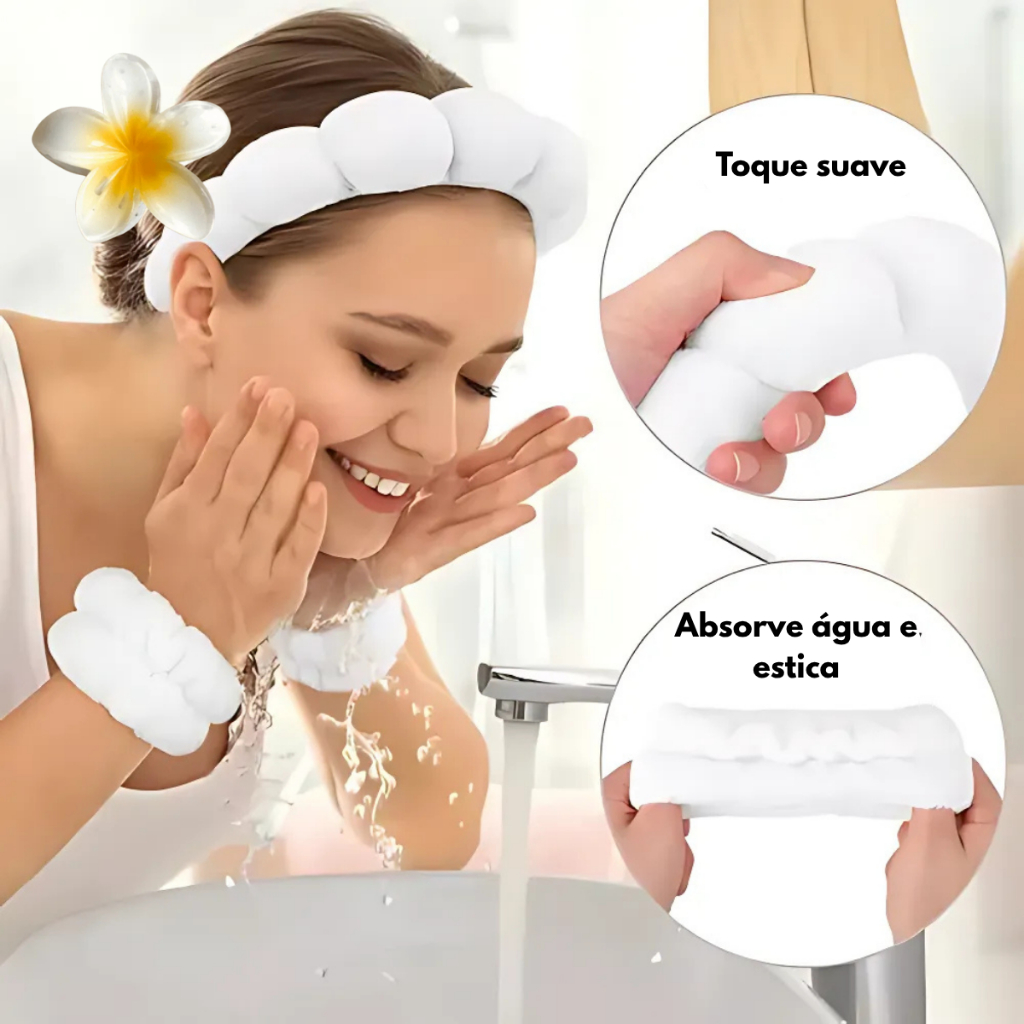 Kit Skin Care Tiara Arco Nuvem Pulseira elastica Piranha presilha Flor Para Cabelo Maquiagem