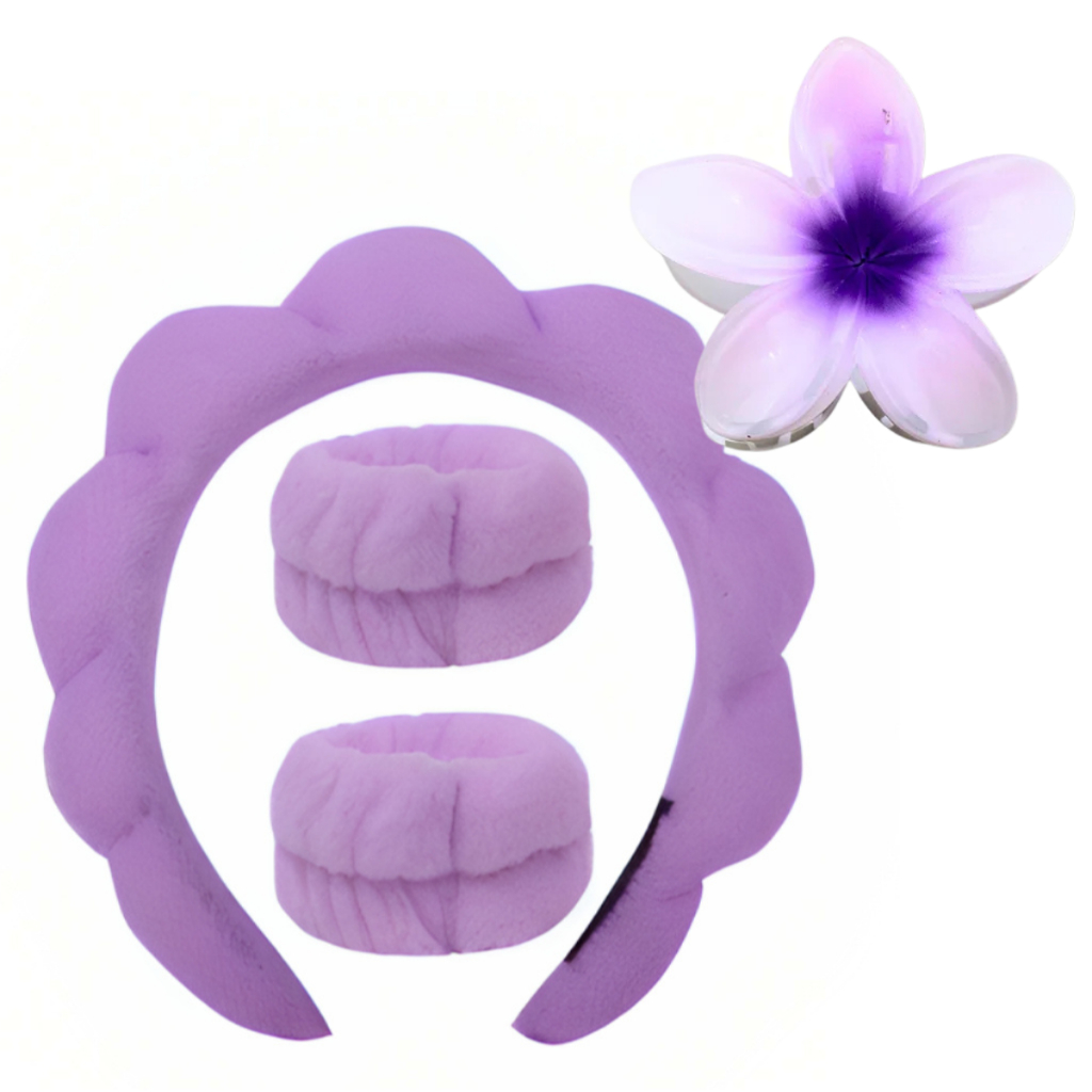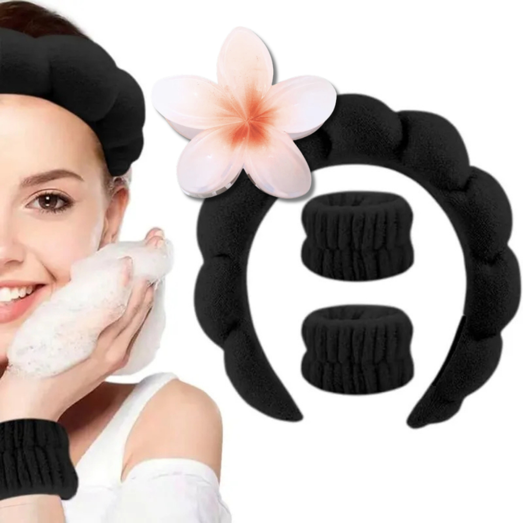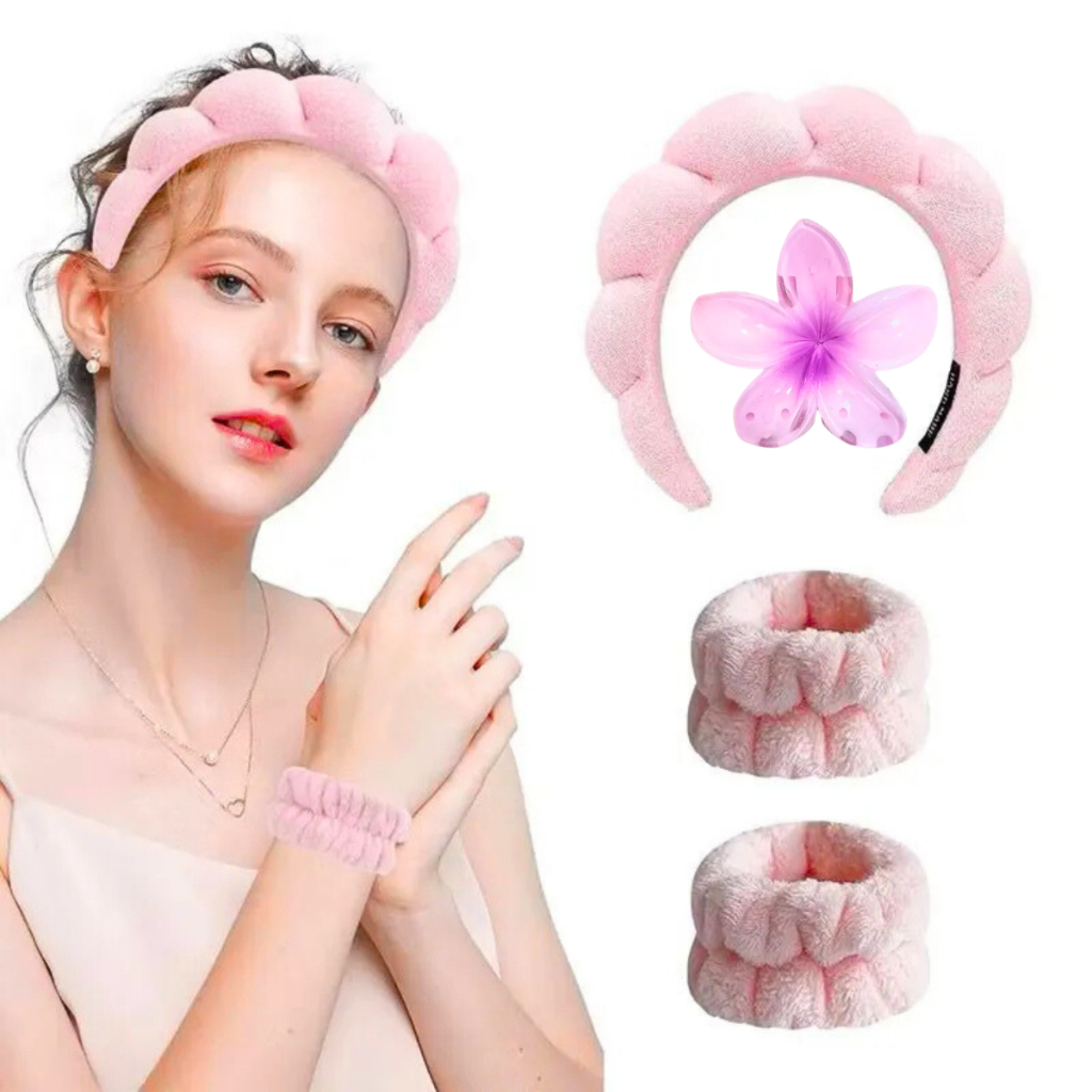Kit Skin Care Tiara Arco Nuvem Pulseira elastica Piranha presilha Flor Para Cabelo Maquiagem