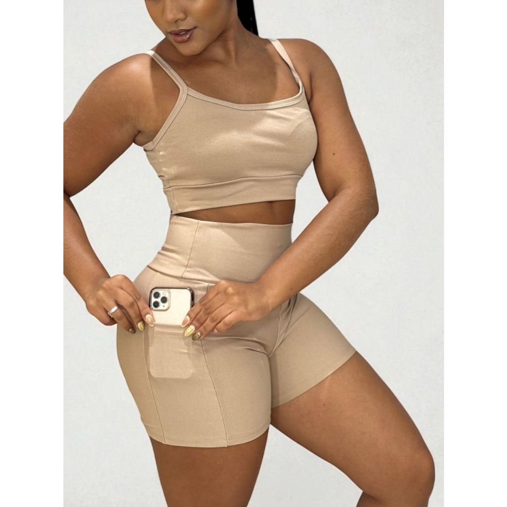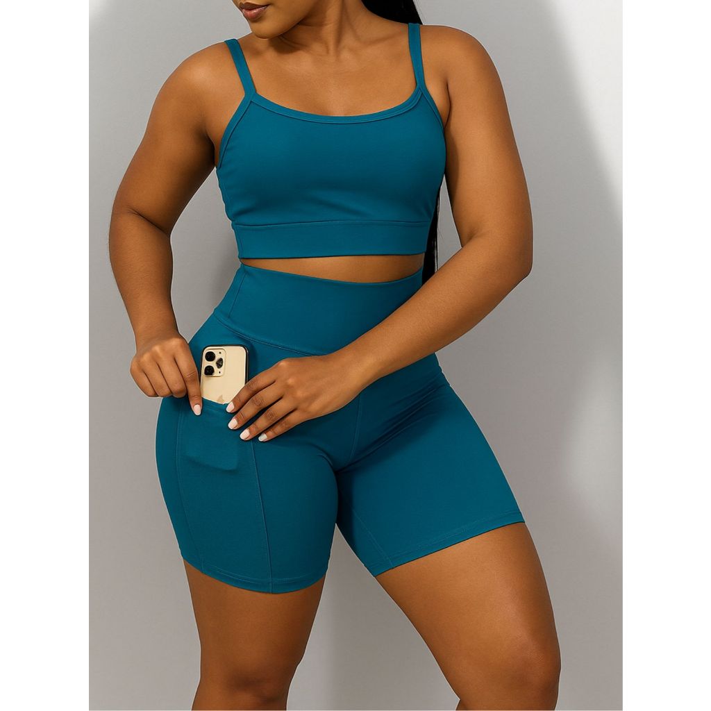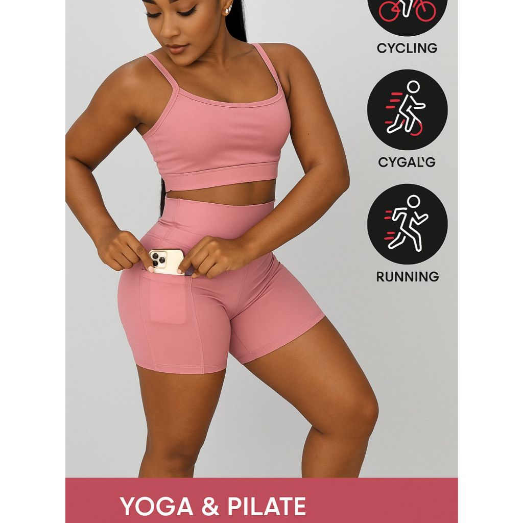 Conjunto top e shorts com BOLSO Fitness Academia Cintura alta Cós Duplo levanta bumbum