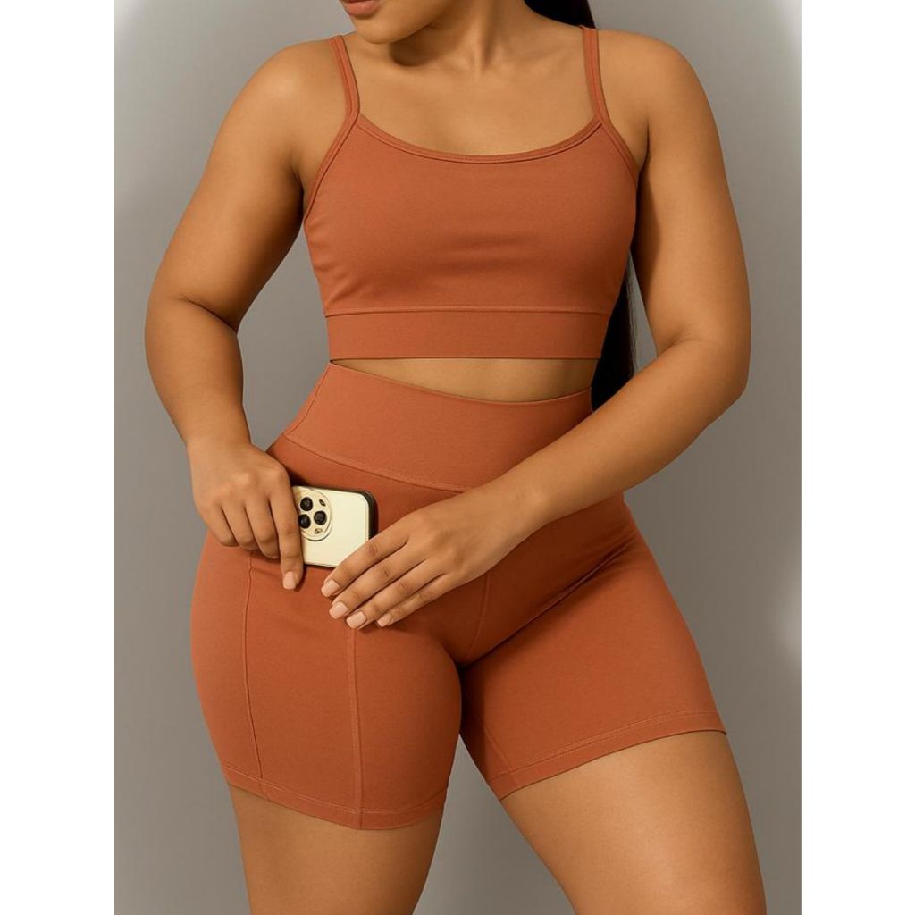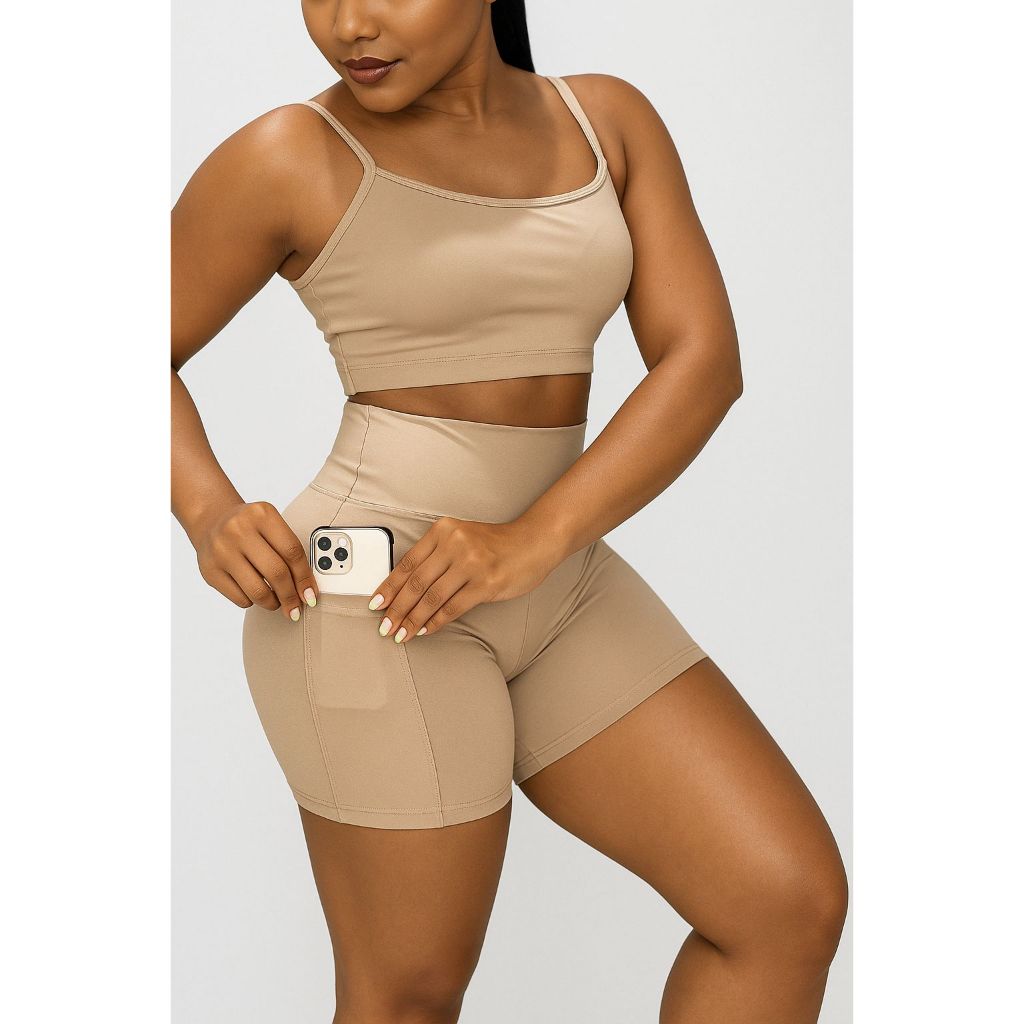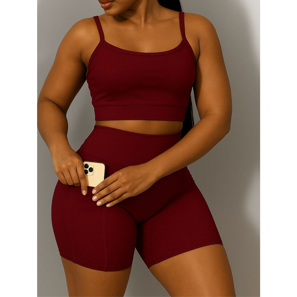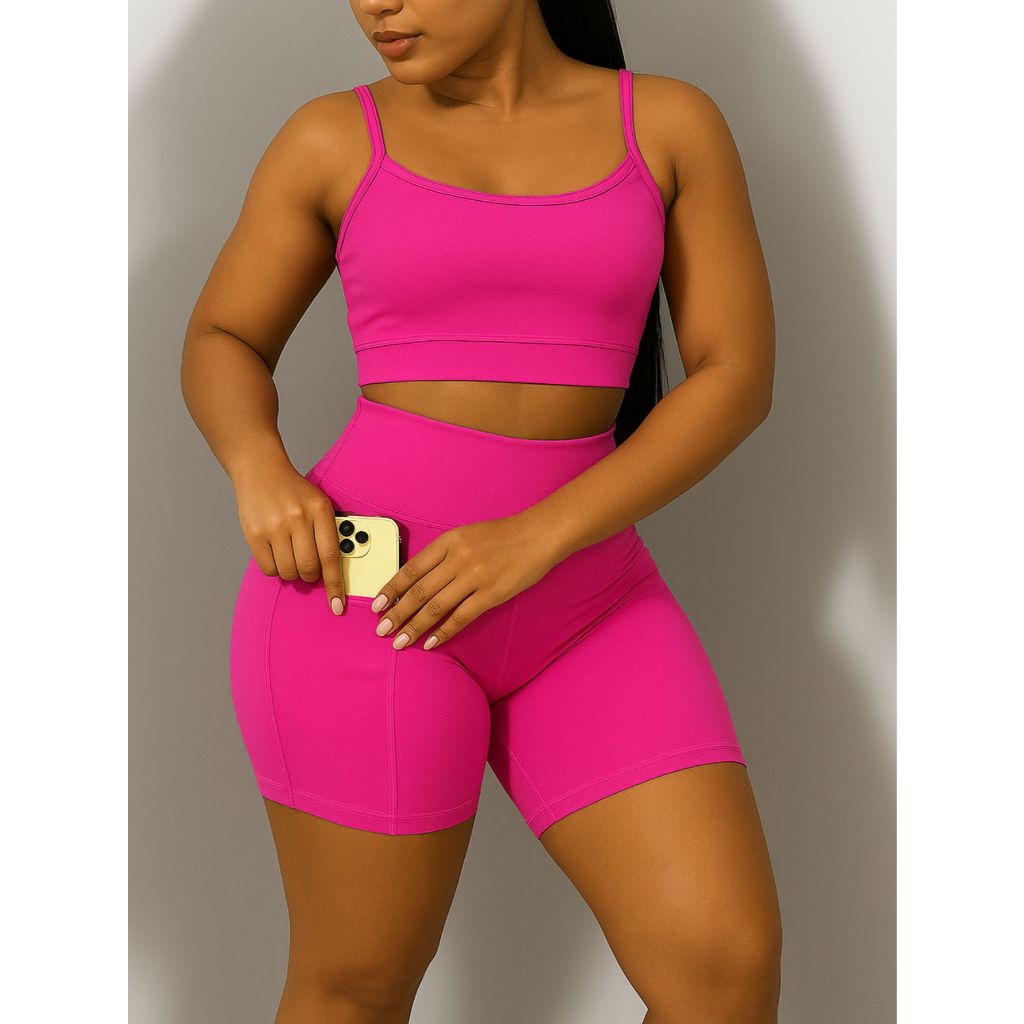 Conjunto top e shorts com BOLSO Fitness Academia Cintura alta Cós Duplo levanta bumbum