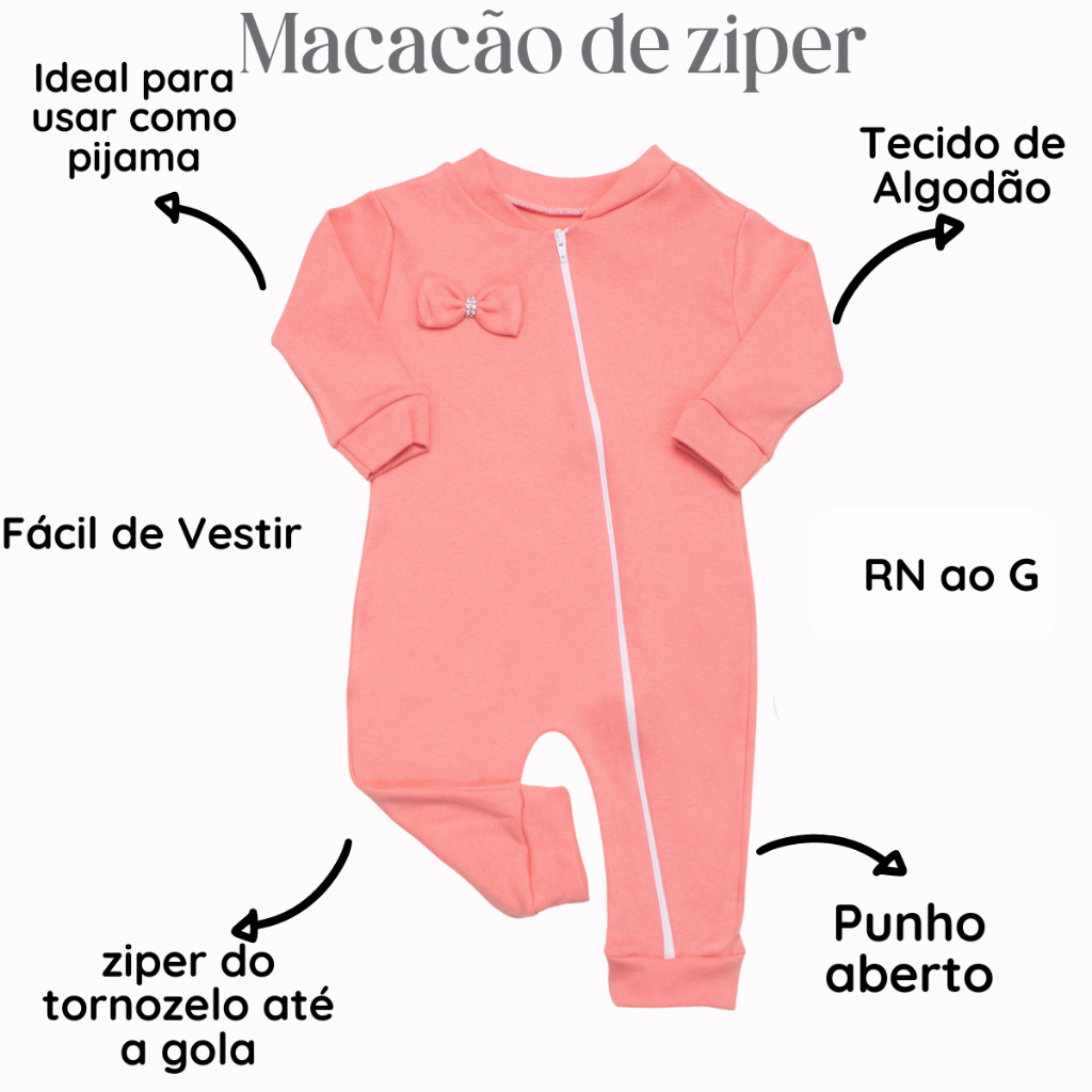 macacão bebe menina ziper Suedine 100% Algodão macacão com ziper de bebê feminino bebê