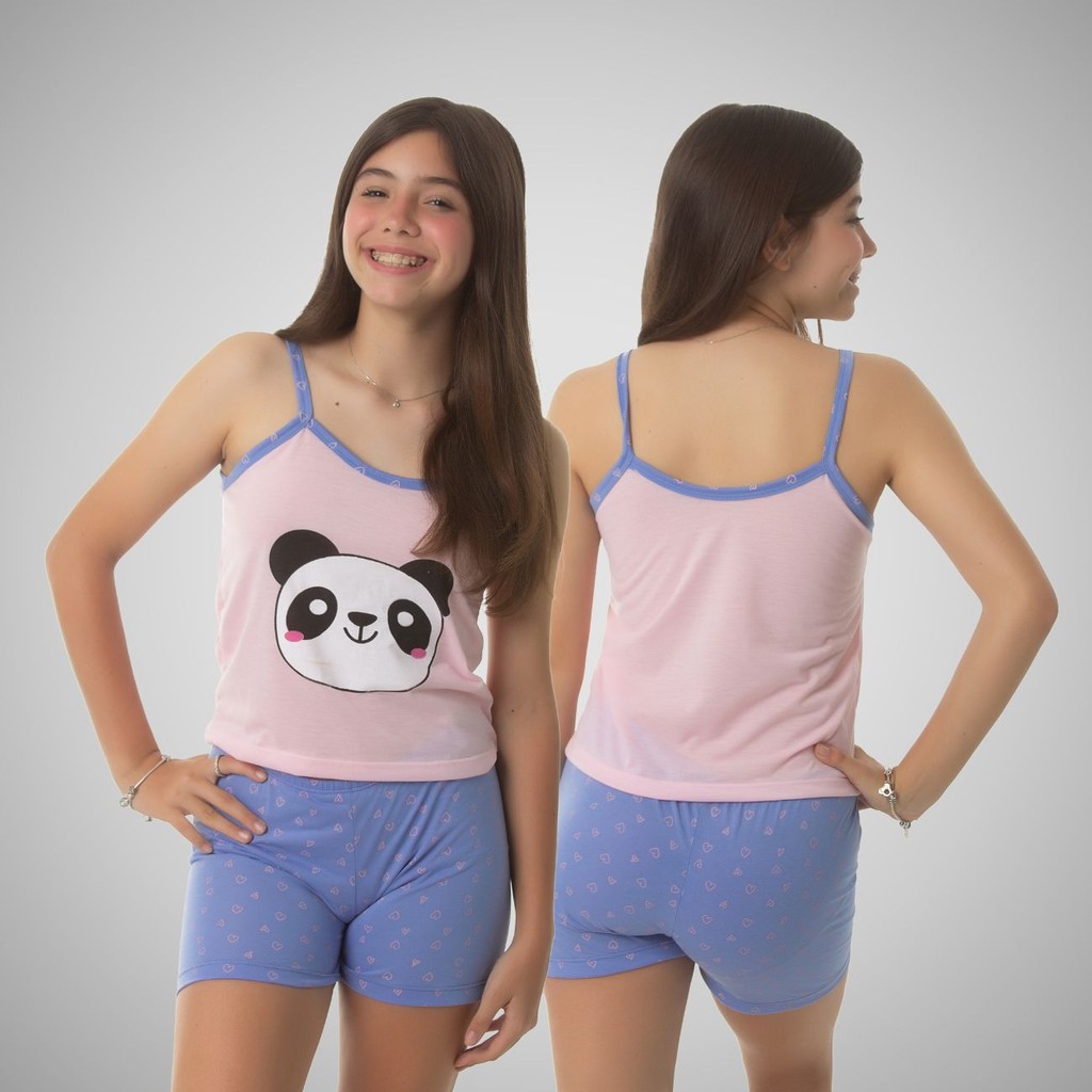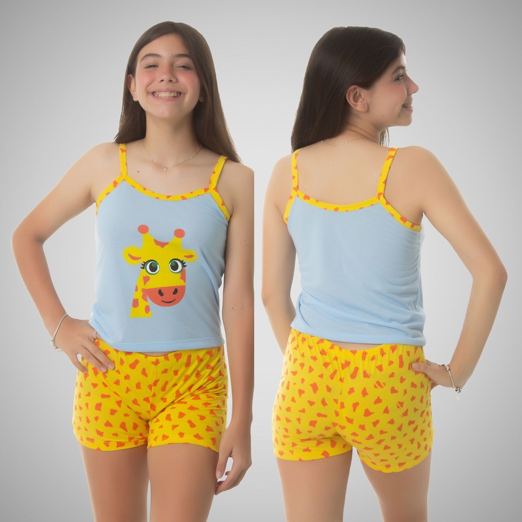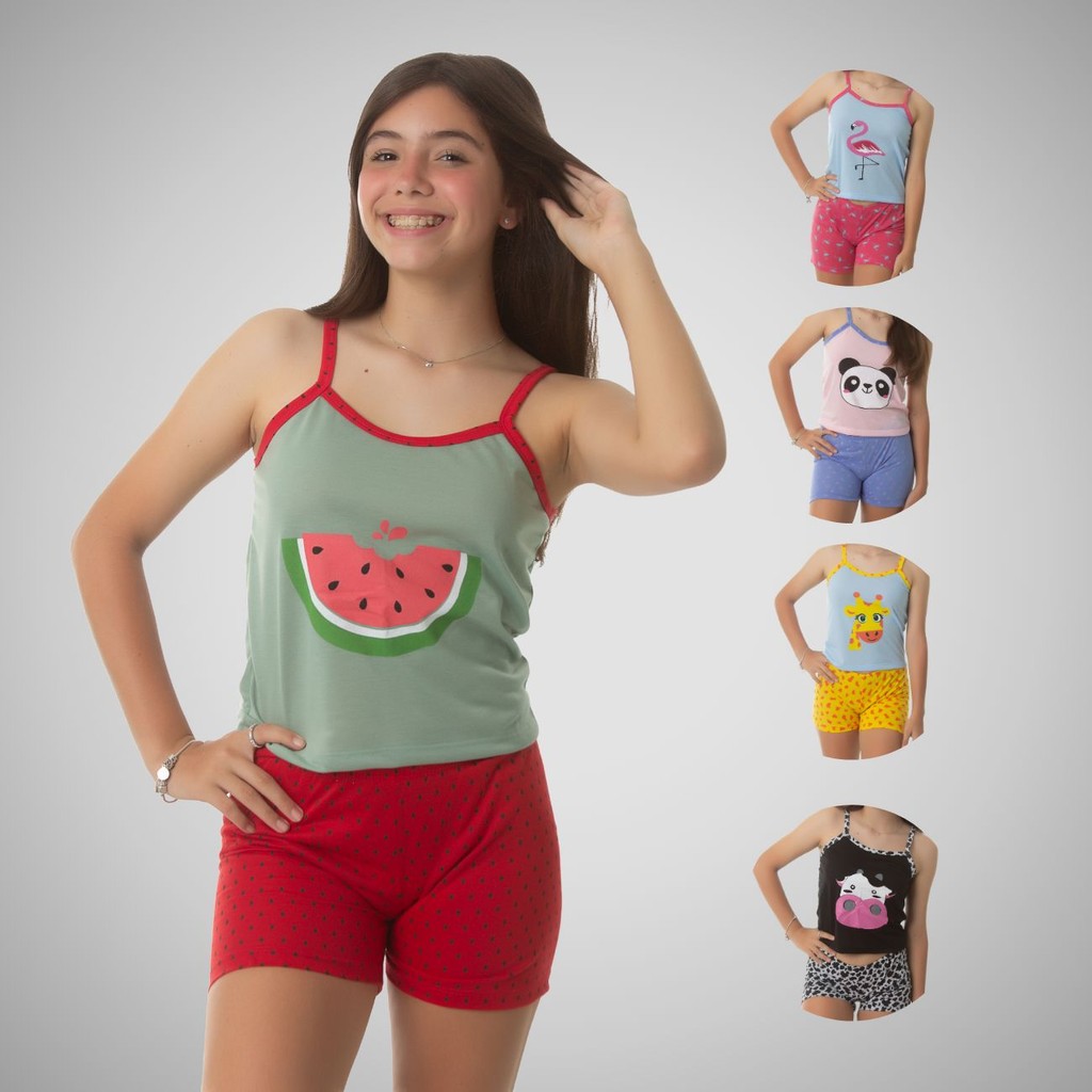 Kit 05 Pijama Infantil Feminino Baby Doll-Short doll De Criança Em Malha Premium Personagens