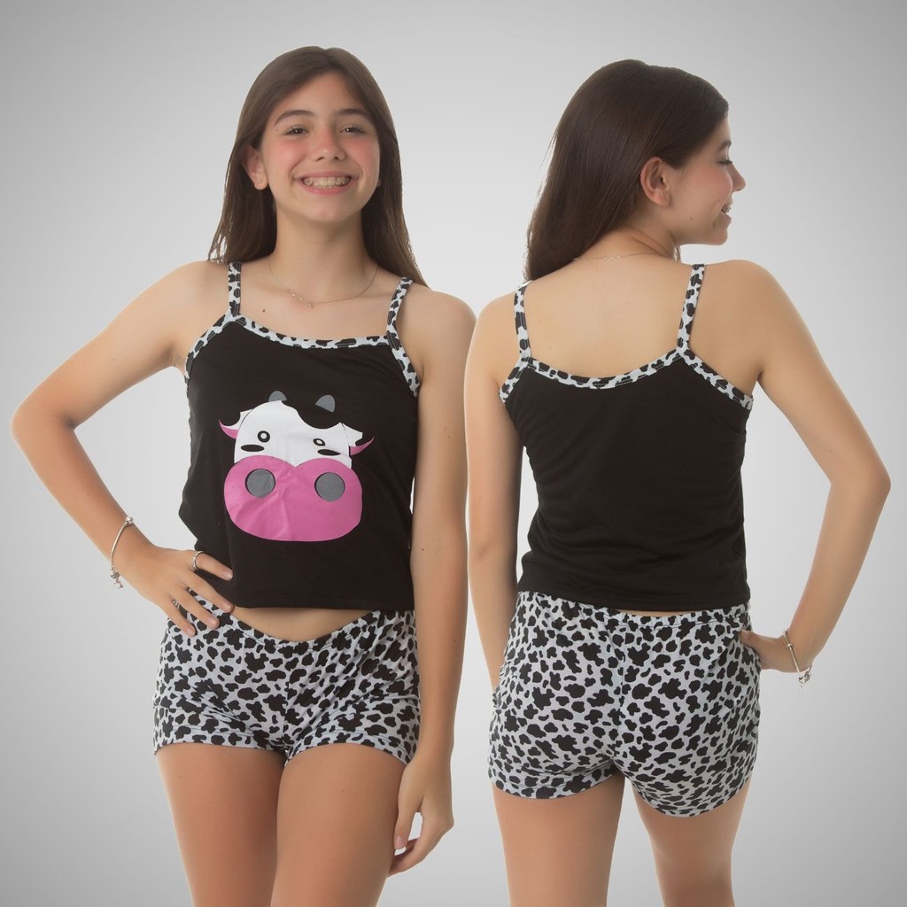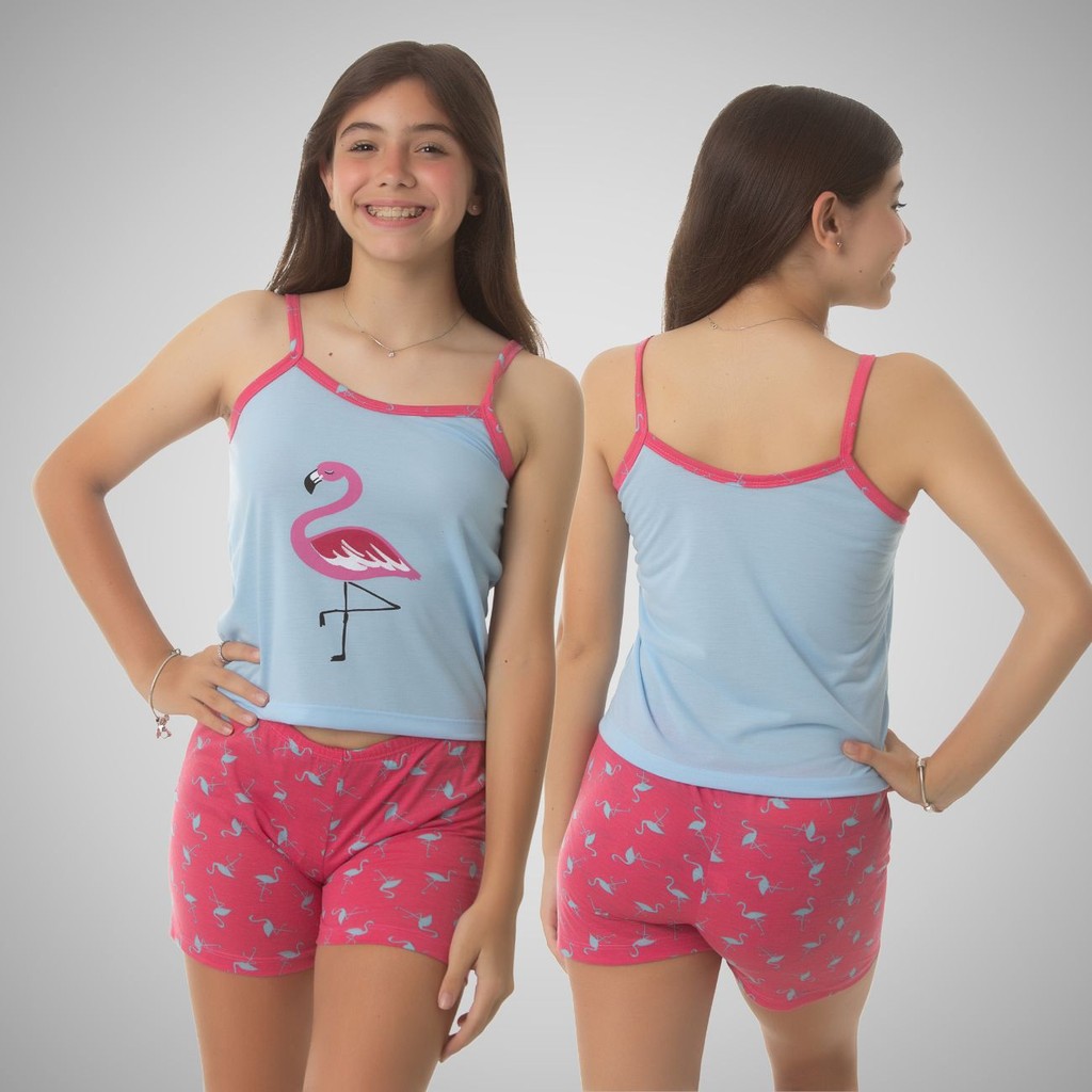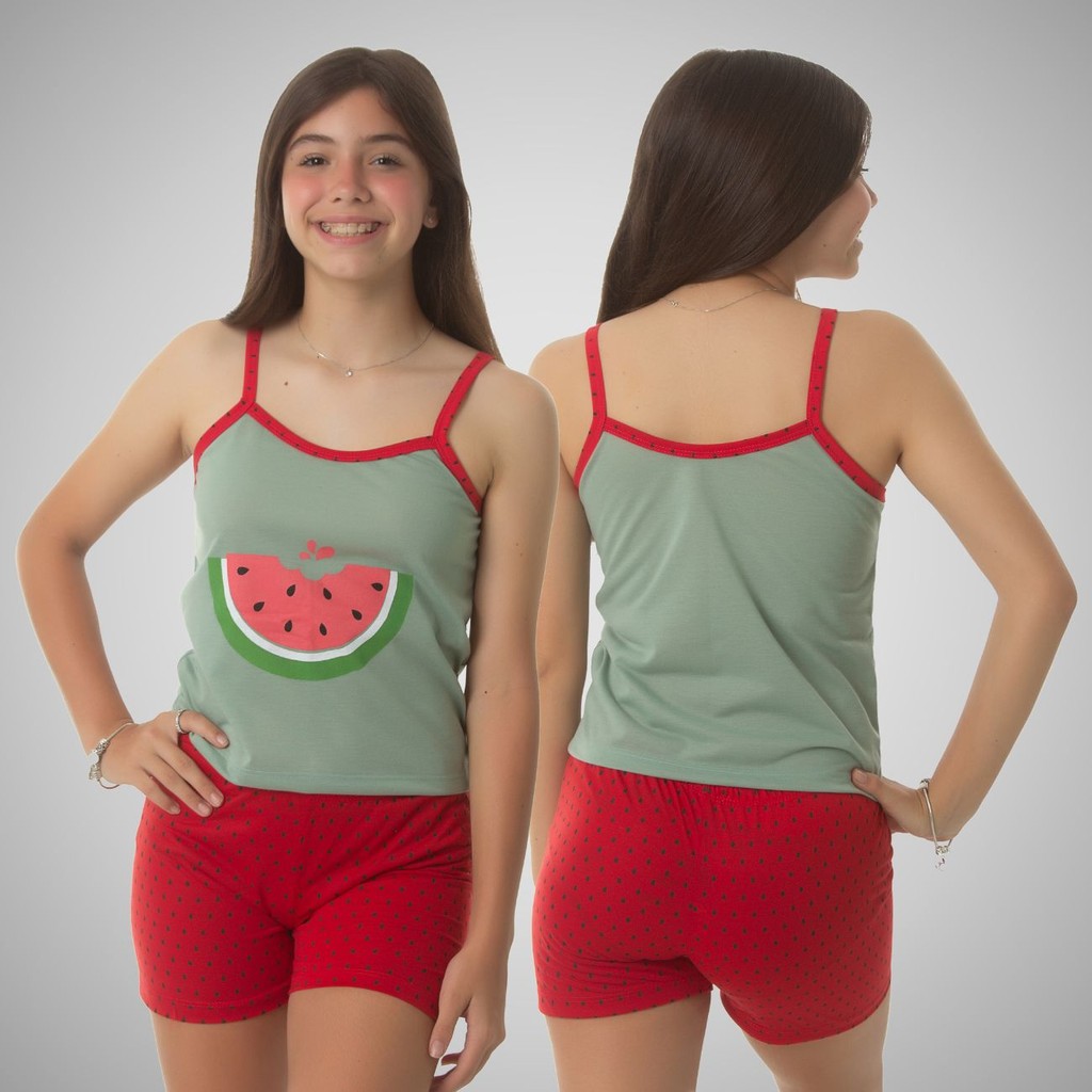 Kit 05 Pijama Infantil Feminino Baby Doll-Short doll De Criança Em Malha Premium Personagens