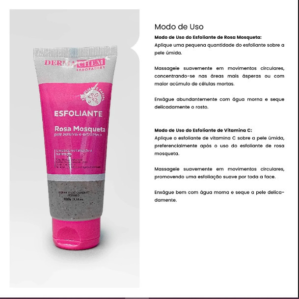 Dermachem - Kit Esfoliante Rosa Mosqueta - Vitamina C - Acido Salicilico - Rosto - Pele - Limpeza