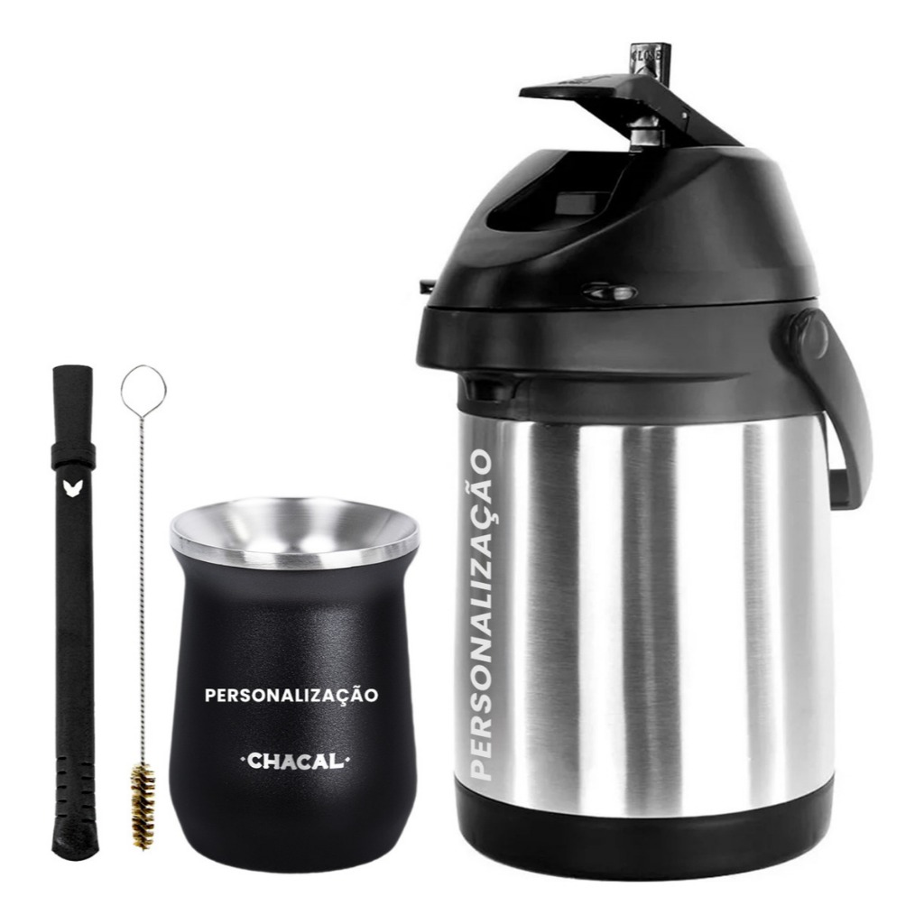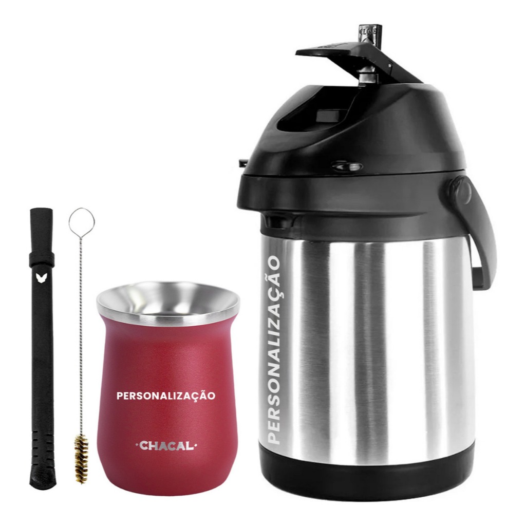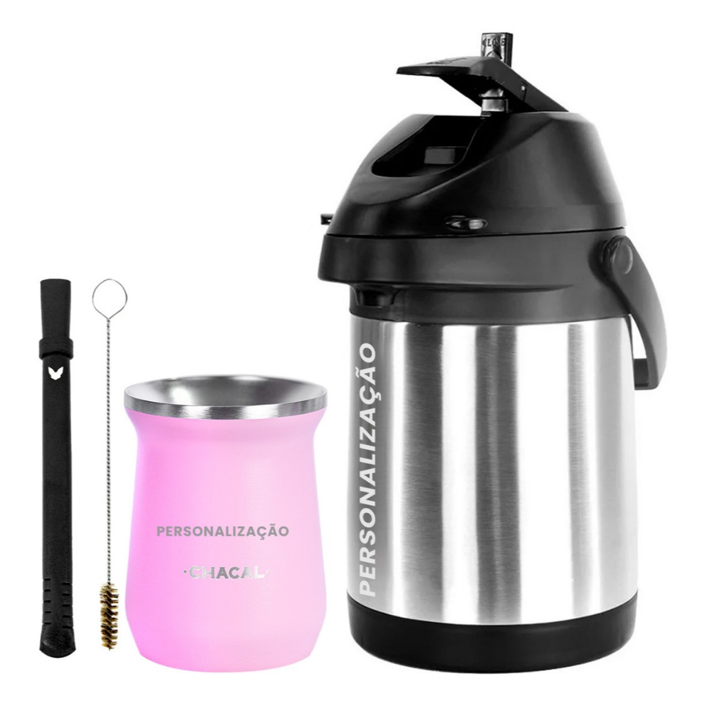 Kit Tereré Chacal Garrafa Térmica Copo Bomba 2.5L - Seu Nome