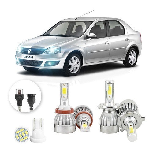 Lâmpadas Ultra Led Renault Logan 20000lm Alto Baixo e Milha + Pingo Led