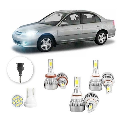Lâmpadas Ultra Led Honda Civic 20000lm Farol Alto Baixo e Milha + Pingo Led