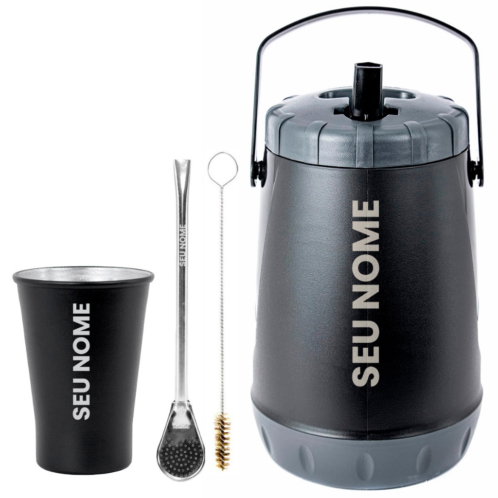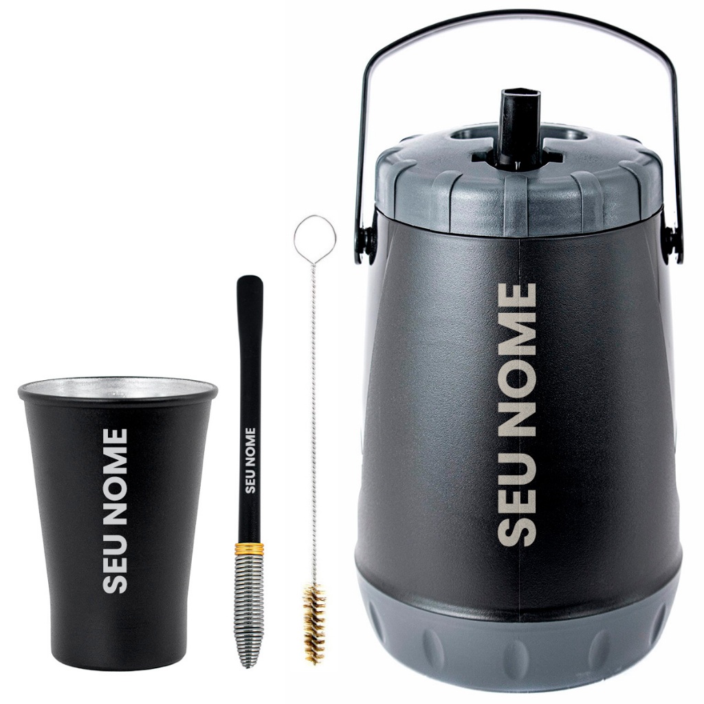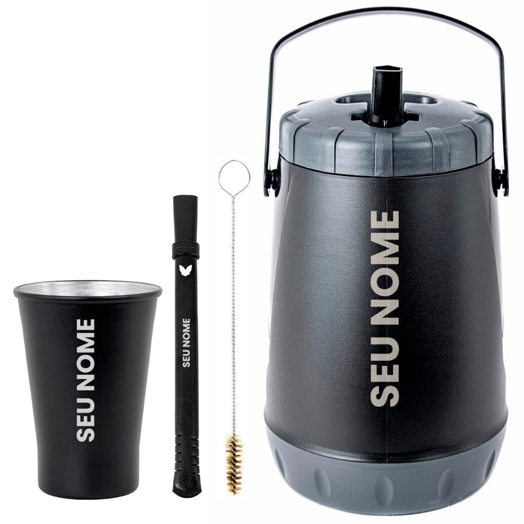 Kit Tereré Garrafa 2.5L Térmica Copo 280ML Bomba Inox - Personalize Seu Nome