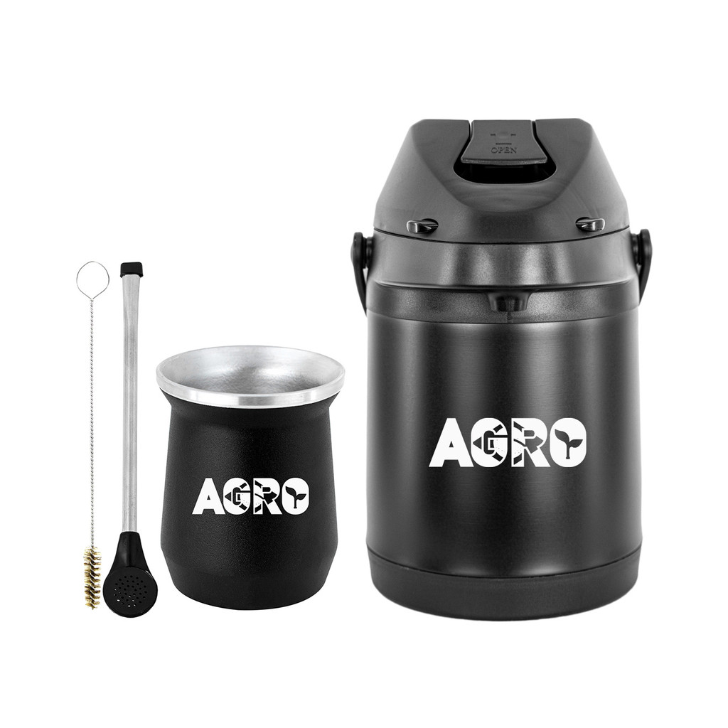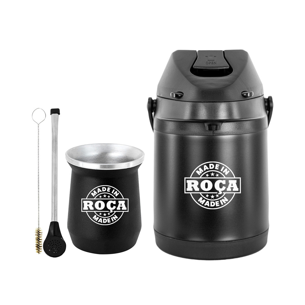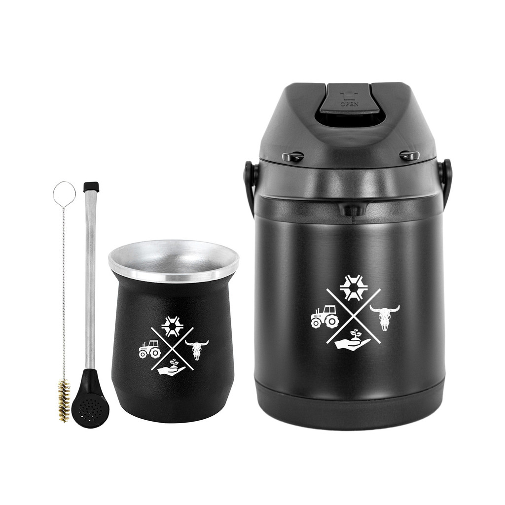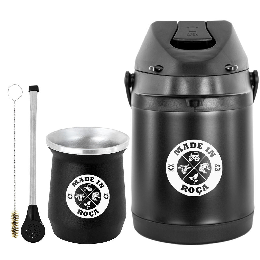 Kit Tereré Garrafa Preta Térmica 2.5l Bomba Preta Tradicional Alumínio Plástica Preta Copo Cuia Alumínio Preto