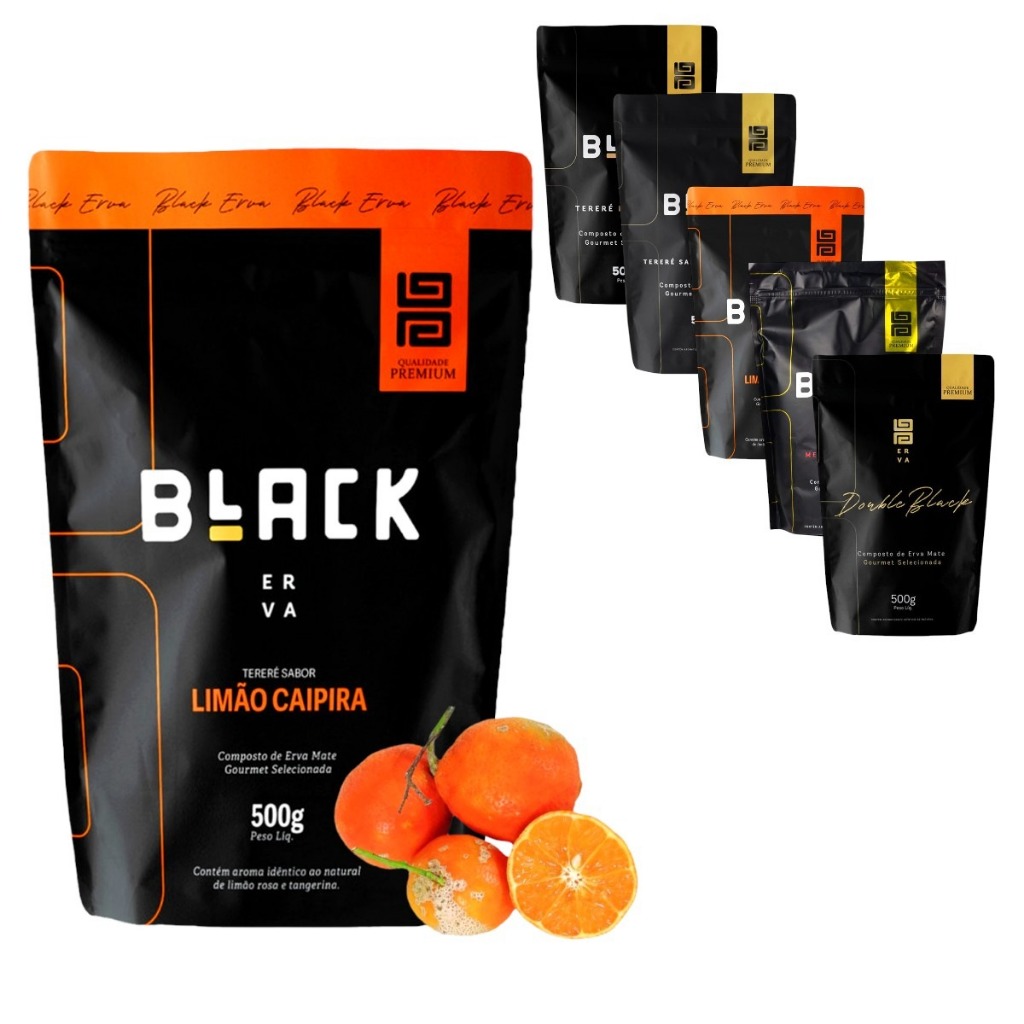 Kit com 5 Ervas Mate Tereré BLACK ERVA 500g Todos os sabores - ERVA BLACK