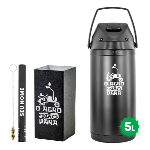 Kit Tereré Garrafa Térmica 5l Copo Bomba Black - Agro