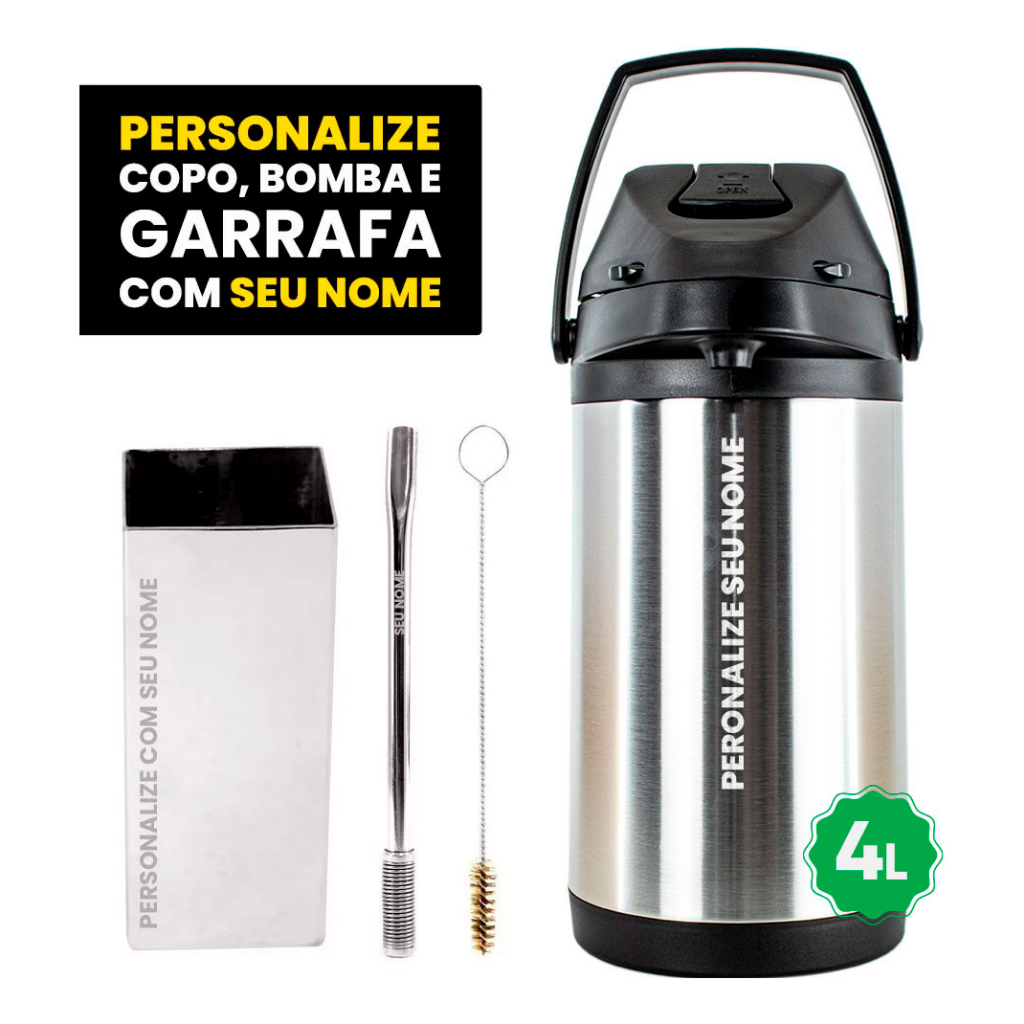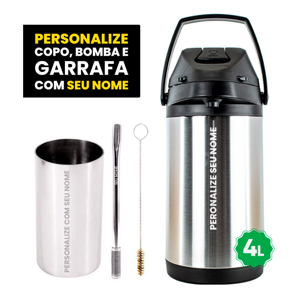 Kit Tereré Copo Bomba Garrafa Termica 4l Inox - Seu Nome