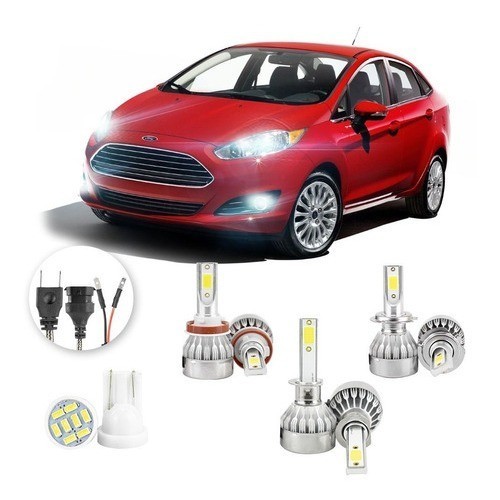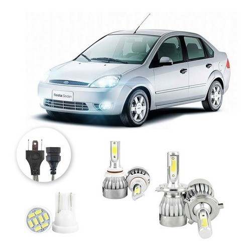Lâmpadas Ultra Led Ford Fiesta Sedan 20000lm Alto Baixo e Milha + Pingo Led