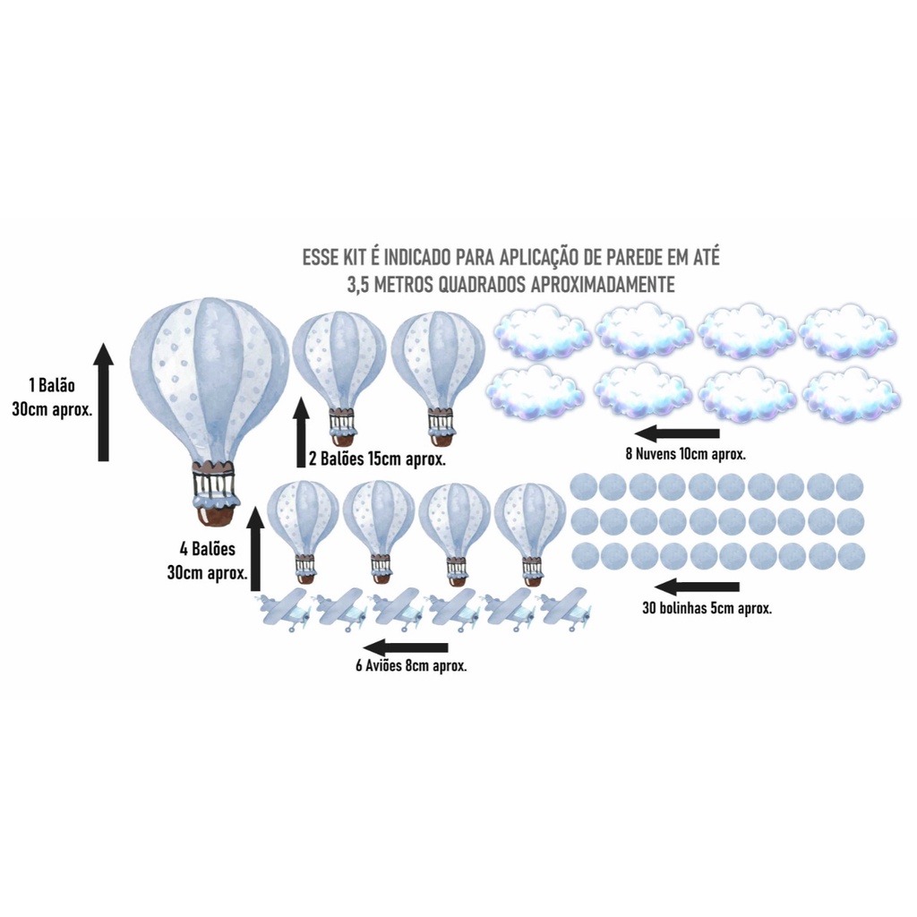 Kit Adesivo de Parede Balões Aquarela + Avião + Bolinhas + Nuvens - Papel de Parede Infantil (MOD-104)