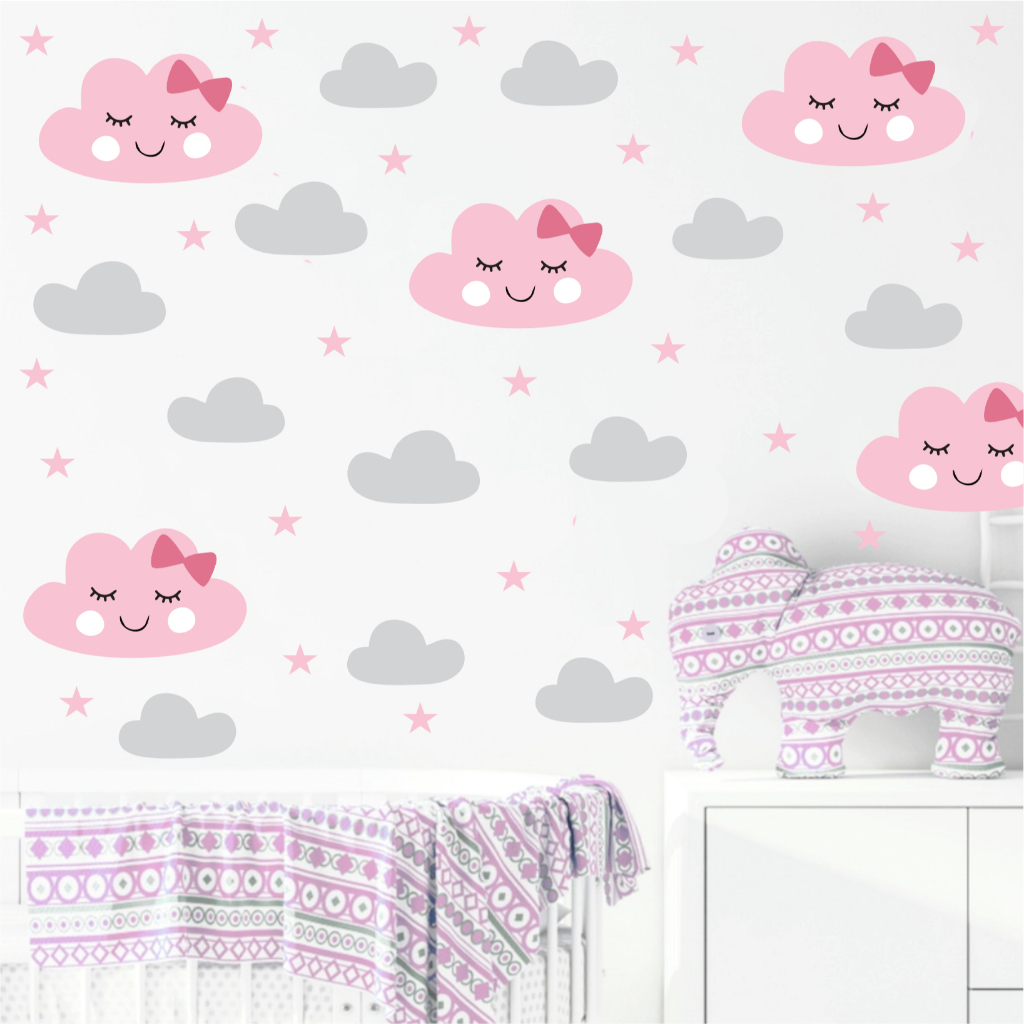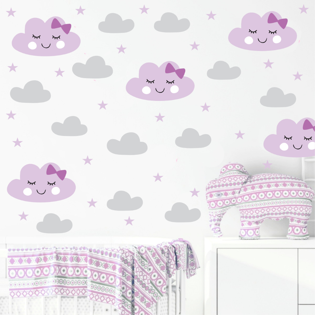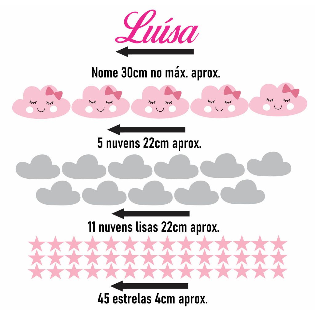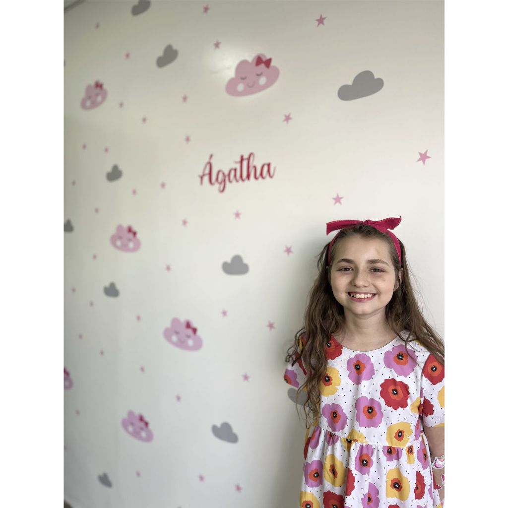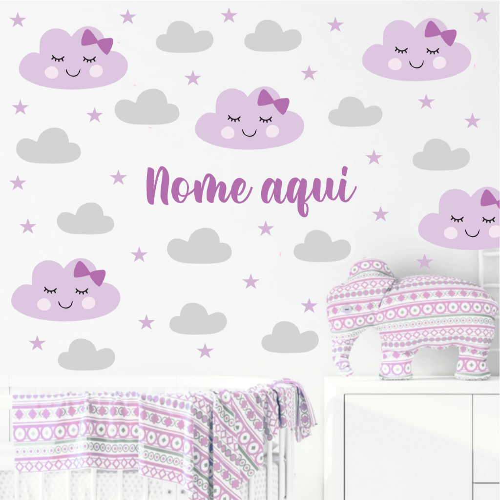 Adesivo de Parede Nuvem Personalizado com Nome - Adesivo de Parede Infantil Decoração Quarto de Menina