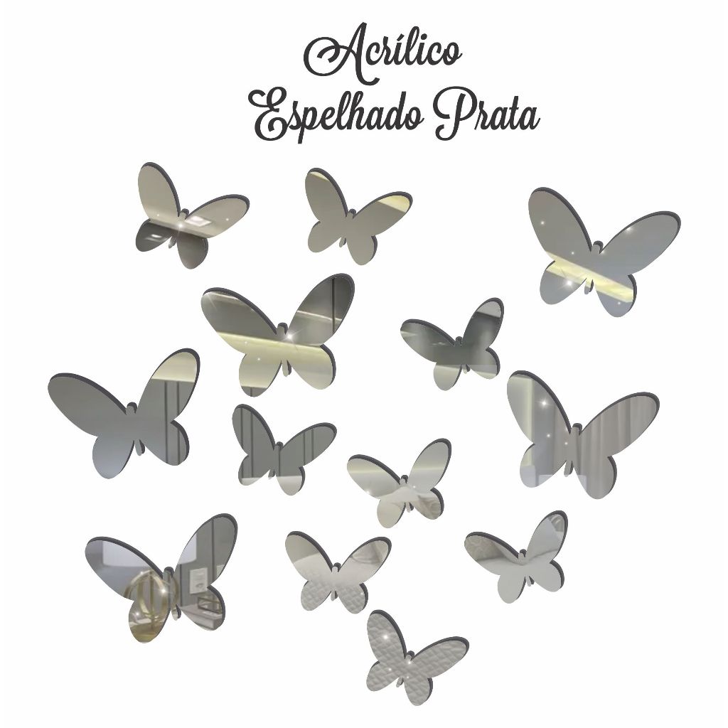Kit 13 Borboletas em Acrílico Espelhado Rose - Decoração Parede - Quartos - Brilhante Elegante e Moderno
