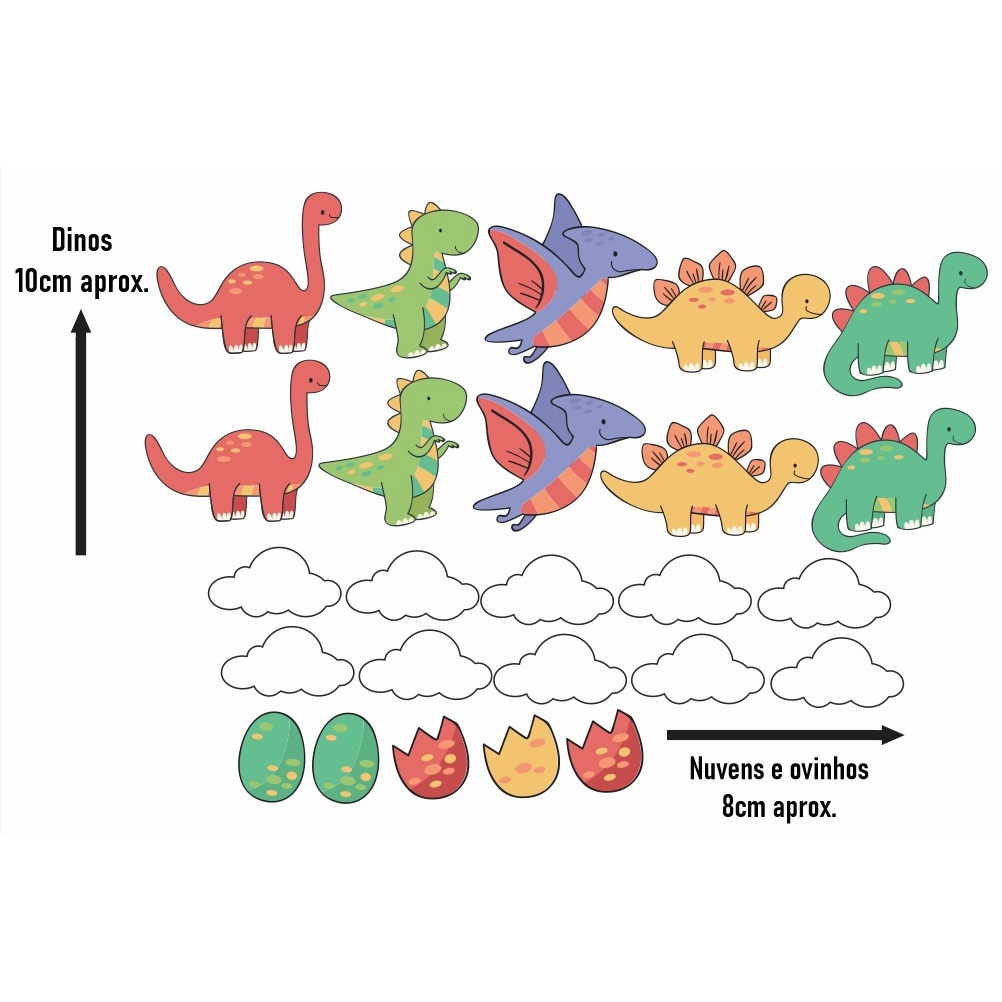 Kit Adesivo de Parede Dinossauros - Decoração Lúdica Quarto Menino - Papel de Parede Infantil