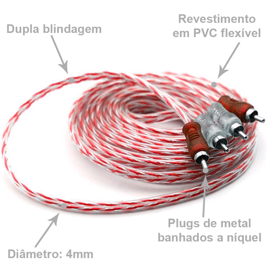 Cabo RCA Dupla Blindagem Injetado 4mm PVC Flexível