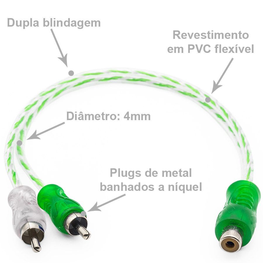 Cabo Y RCA Blindado 1 Femea 2 Machos Injetado Verde 4mm