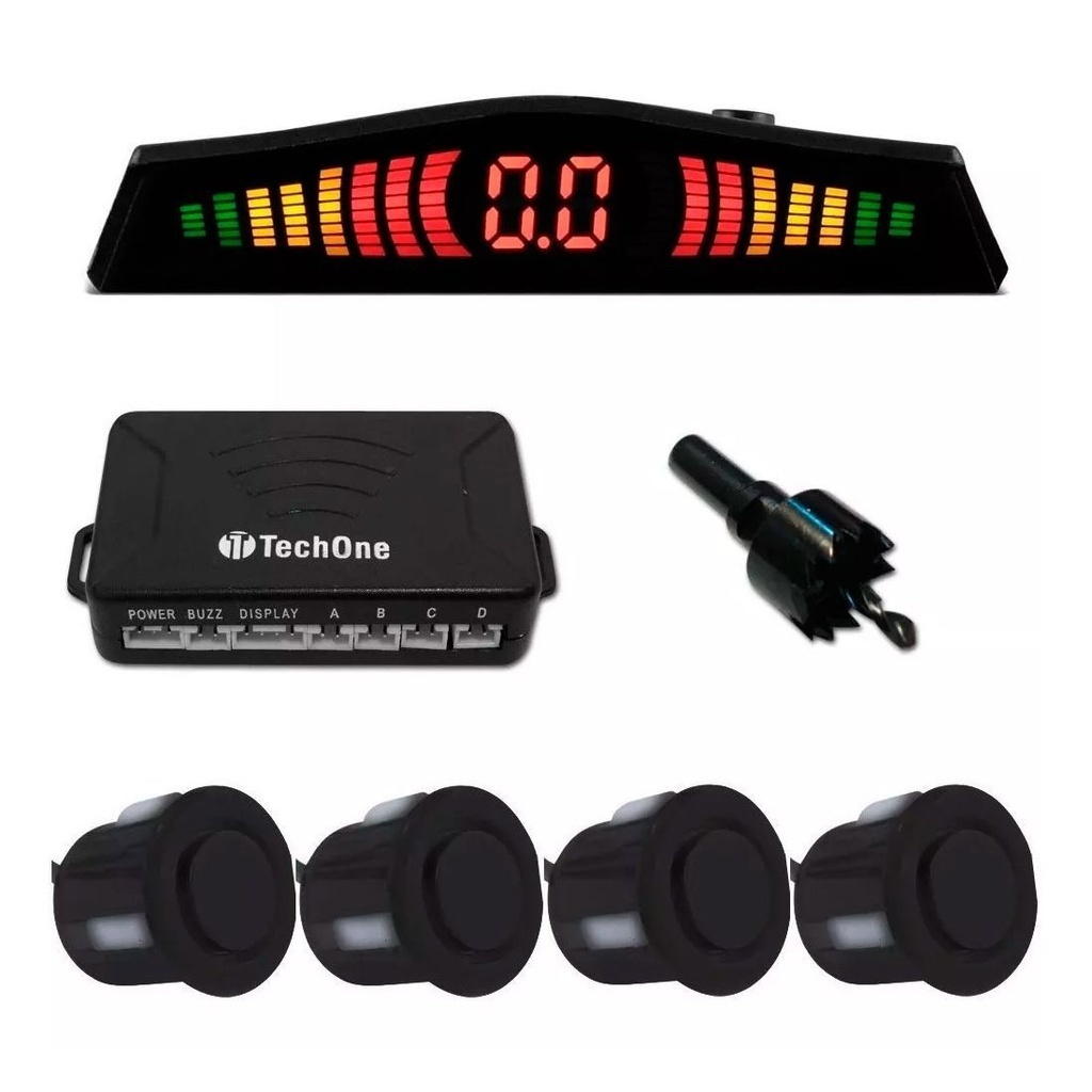 Sensor Estacionamento 4 Pontos Preto Fosco Display Led Sinal Sonoro