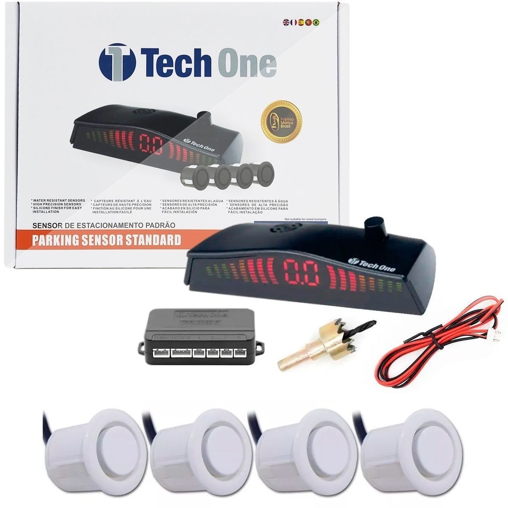Sensor Estacionamento 4 Pontos Branco Display Led Sinal Sonoro
