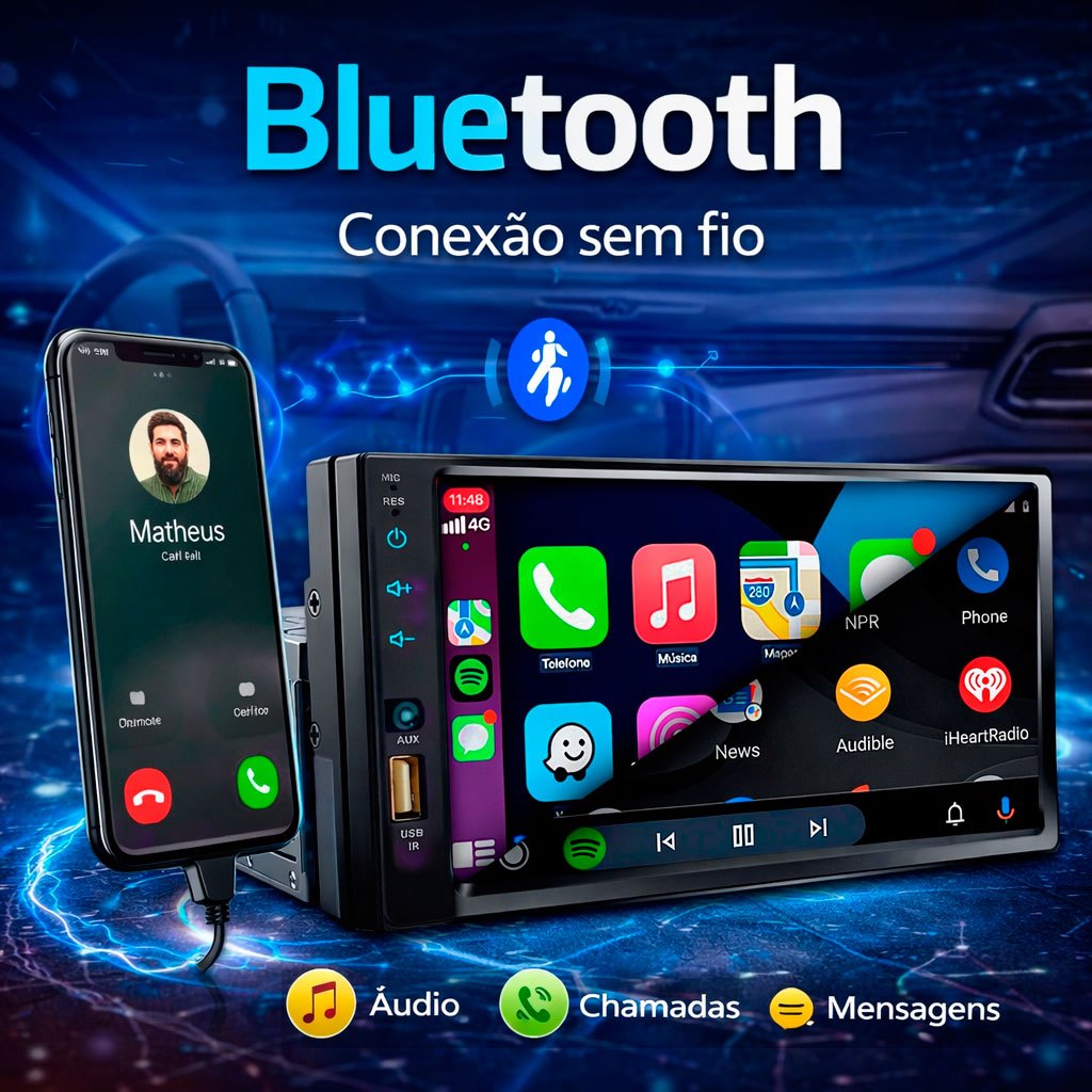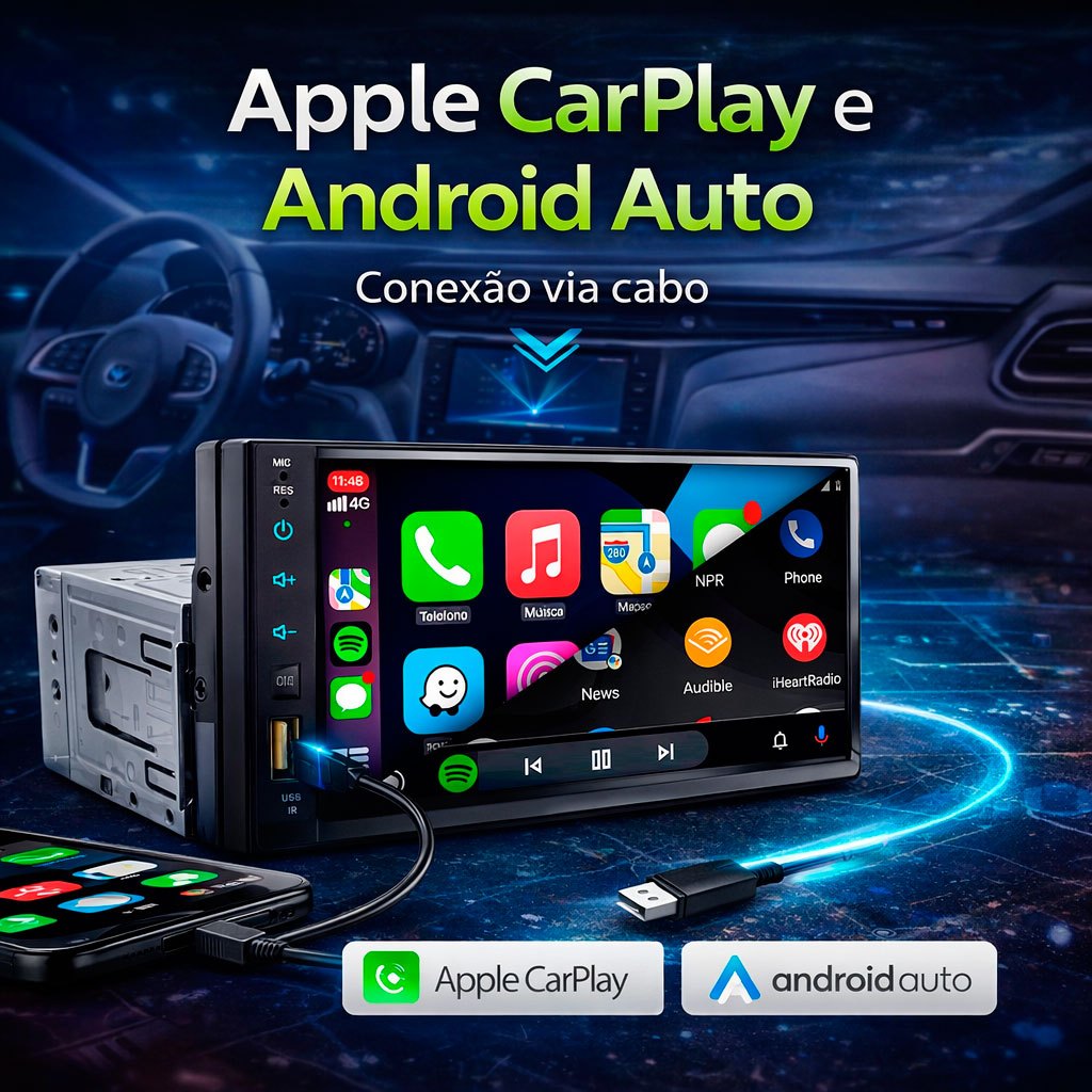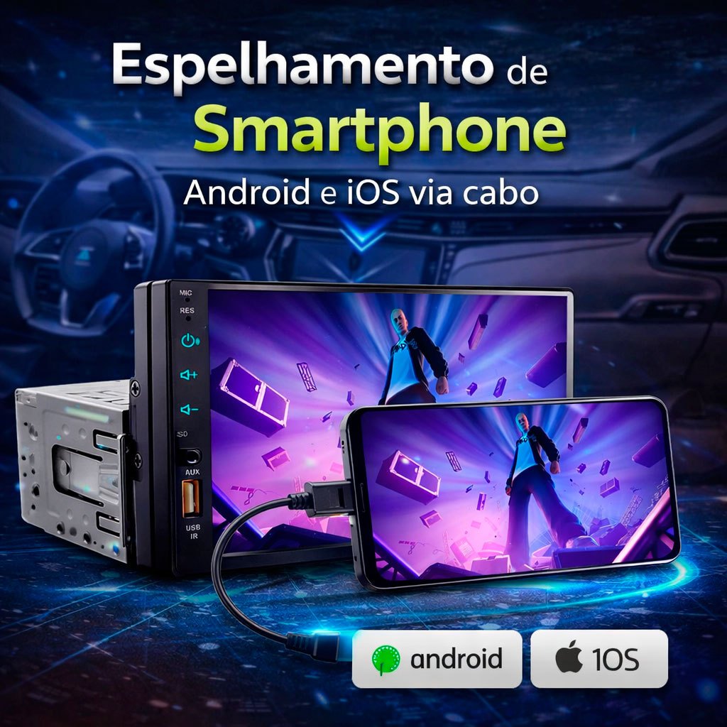 Central Multimídia Mp5 1Din 2Din 7 Carplay Android Auto Espelhamento USB Bluetooth
