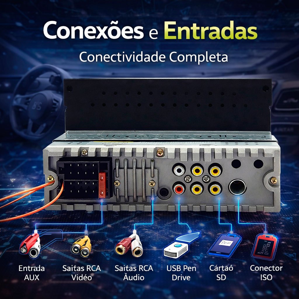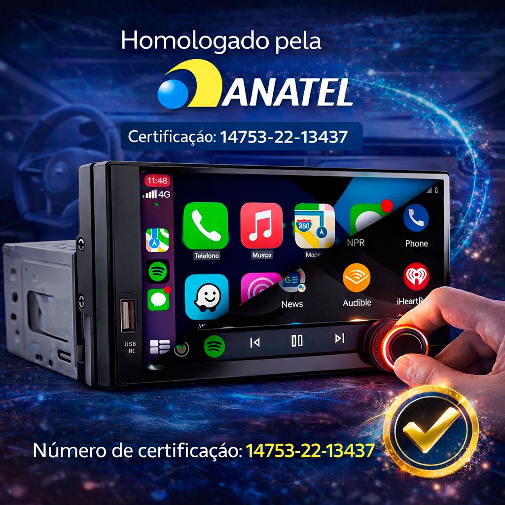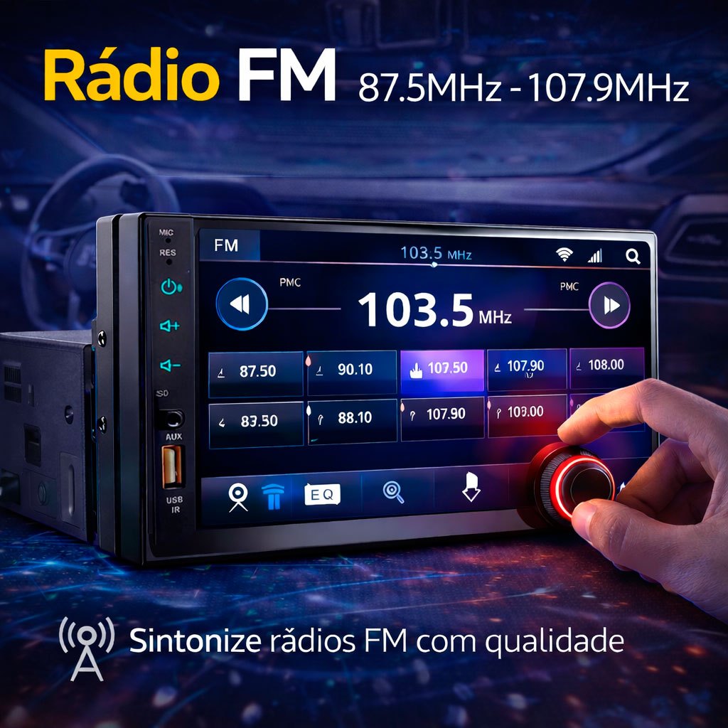 Central Multimídia Mp5 1Din 2Din 7 Carplay Android Auto Espelhamento USB Bluetooth