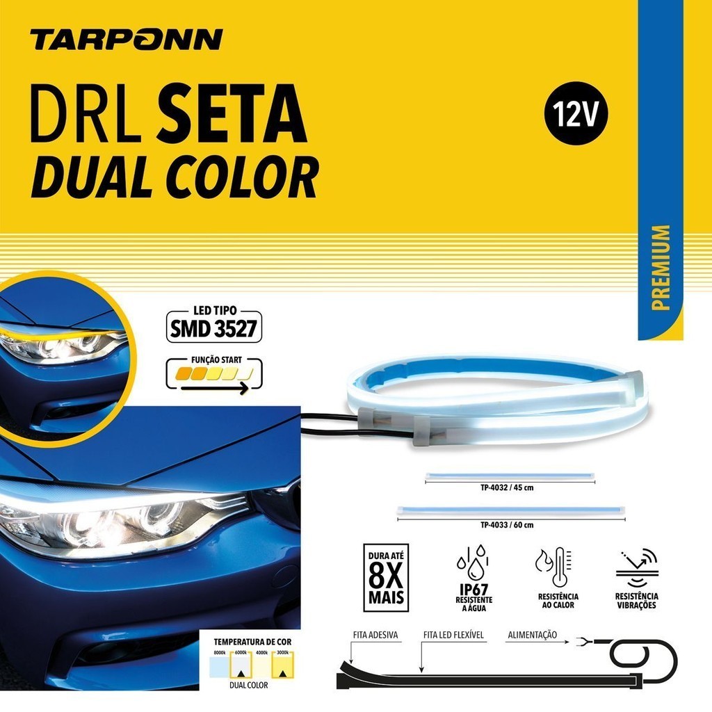 Fita de Led Dual Color DRL Seta Tarponn Farol Dianteiro 60cm