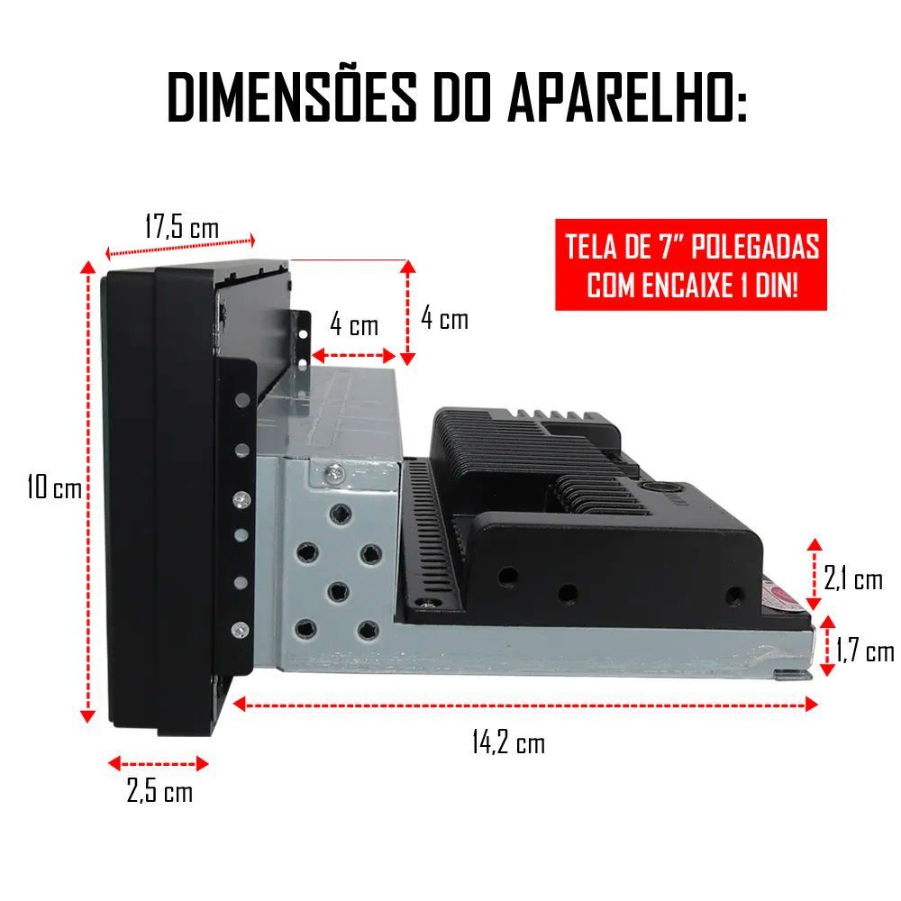 Central Multimidia 7pol 1Din 2GB 32GB Android 12 Carplay Android Auto