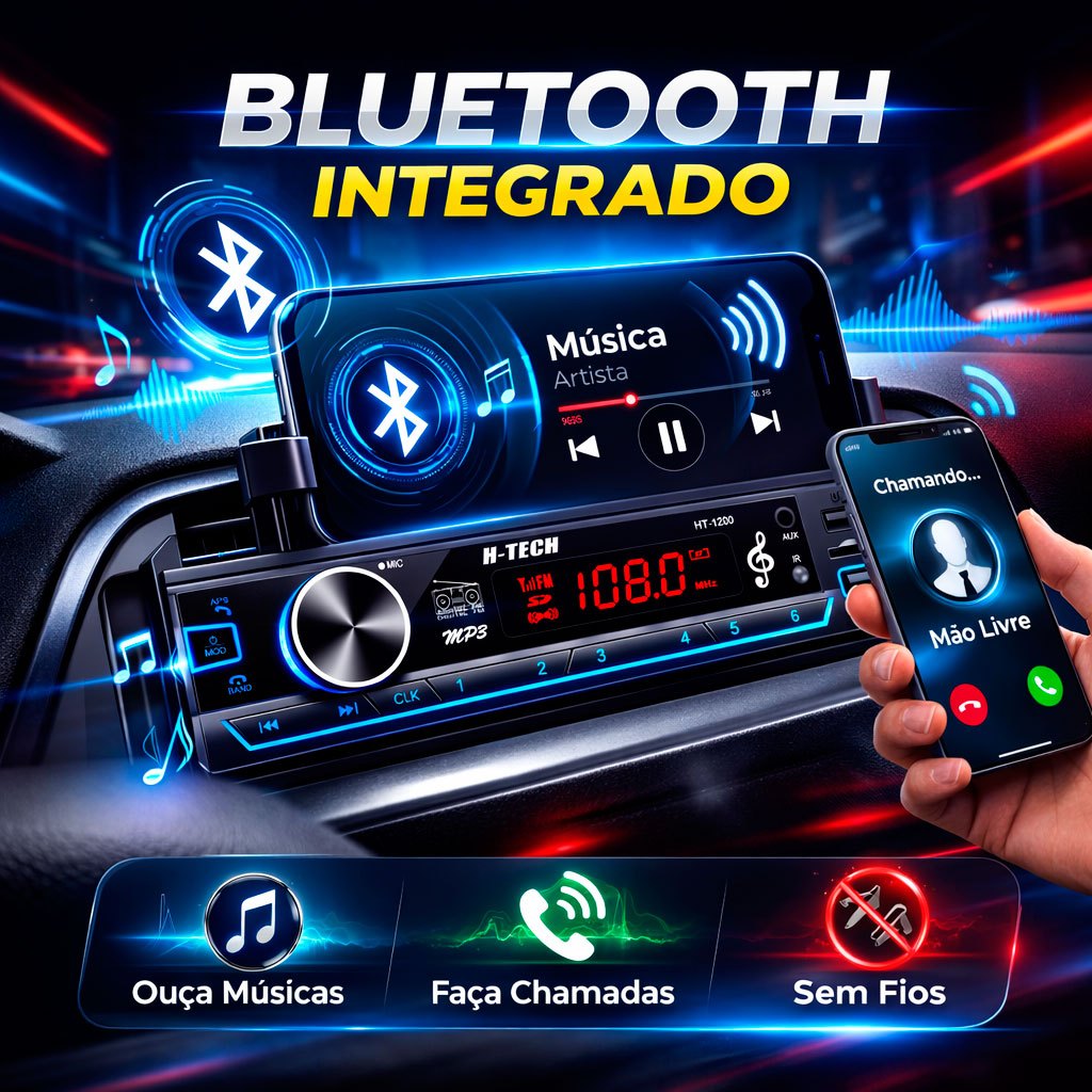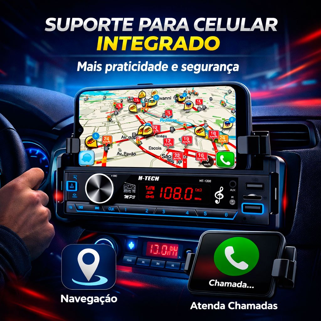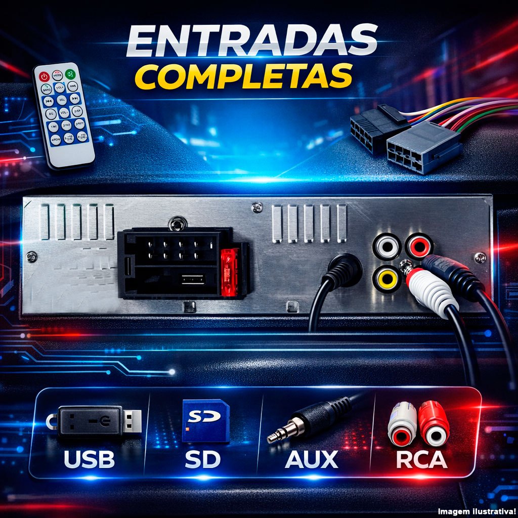 Auto Rádio Com Suporte Para Celular Bluetooth USB SD AUX RCA 1Din Universal