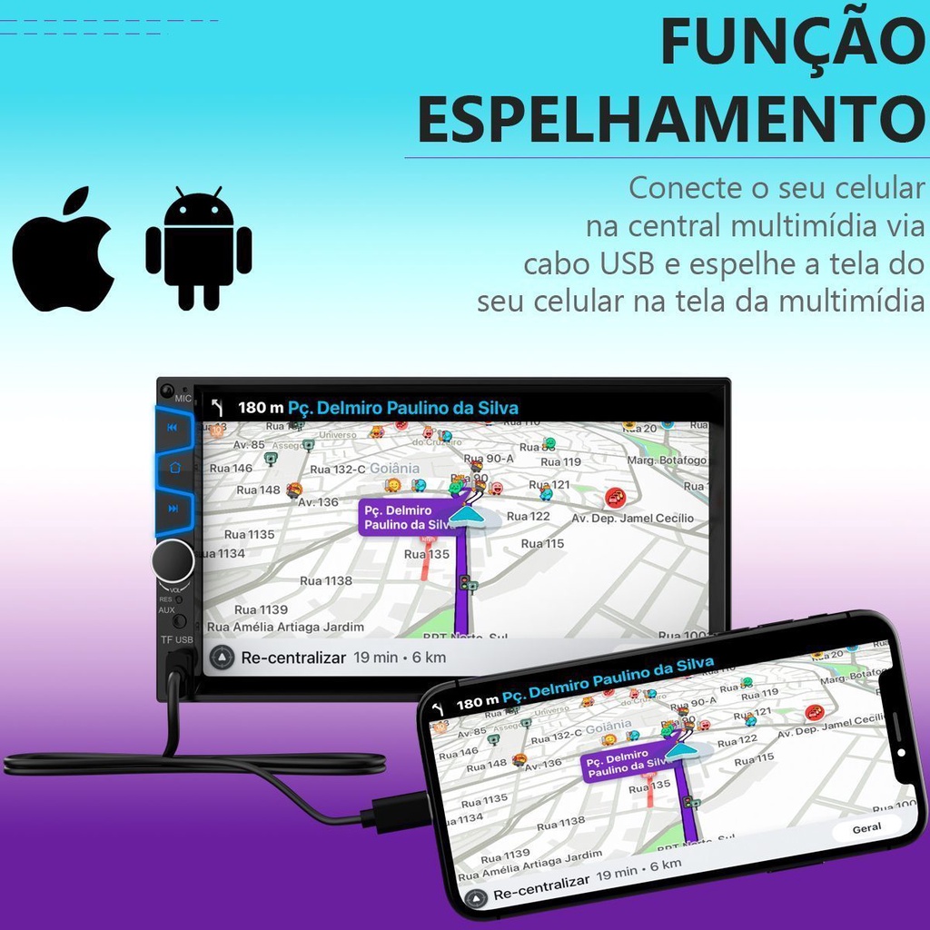 Central Multimídia Universal Mp5 Espelhamento Android IOS Câmera de Ré 7 polegadas WK70S