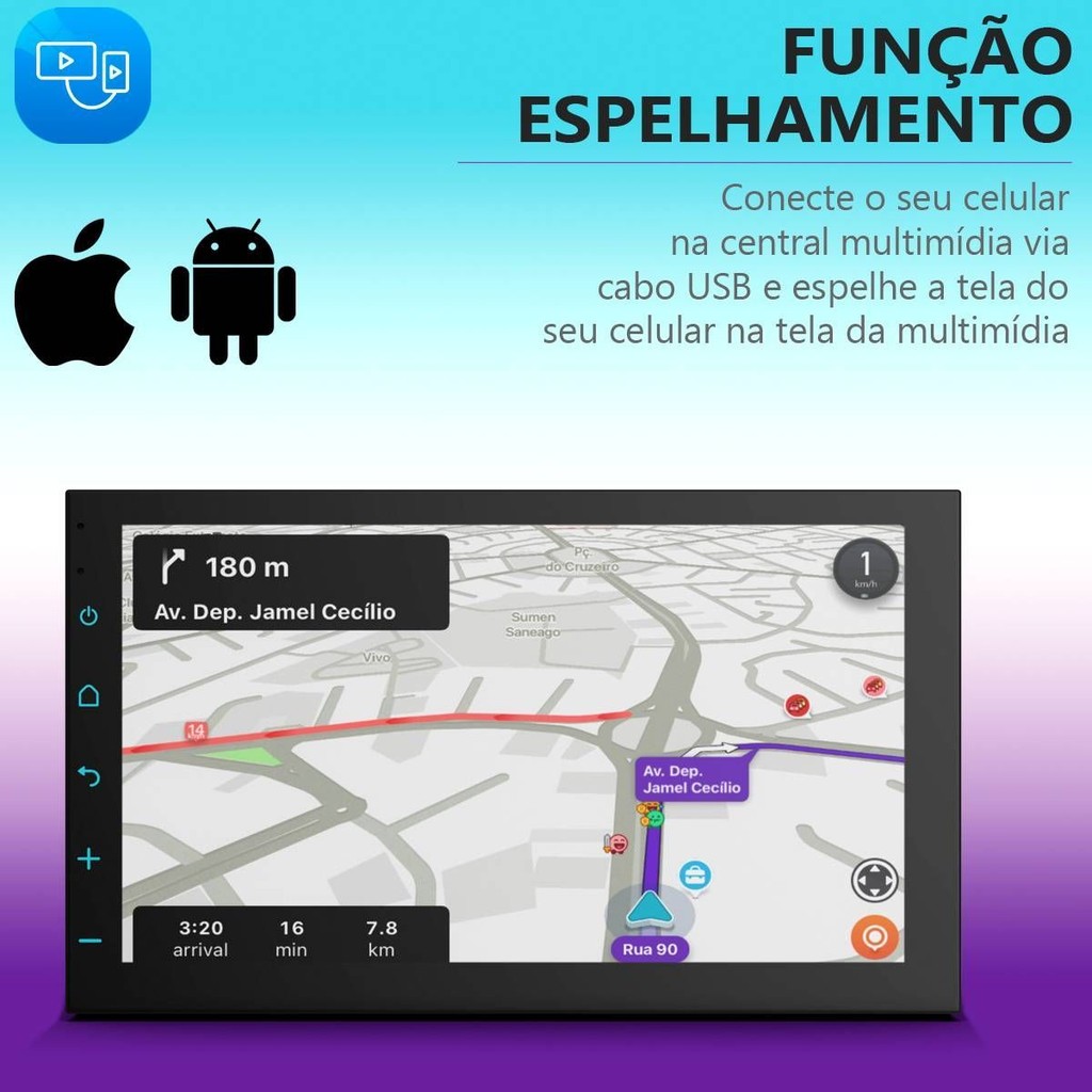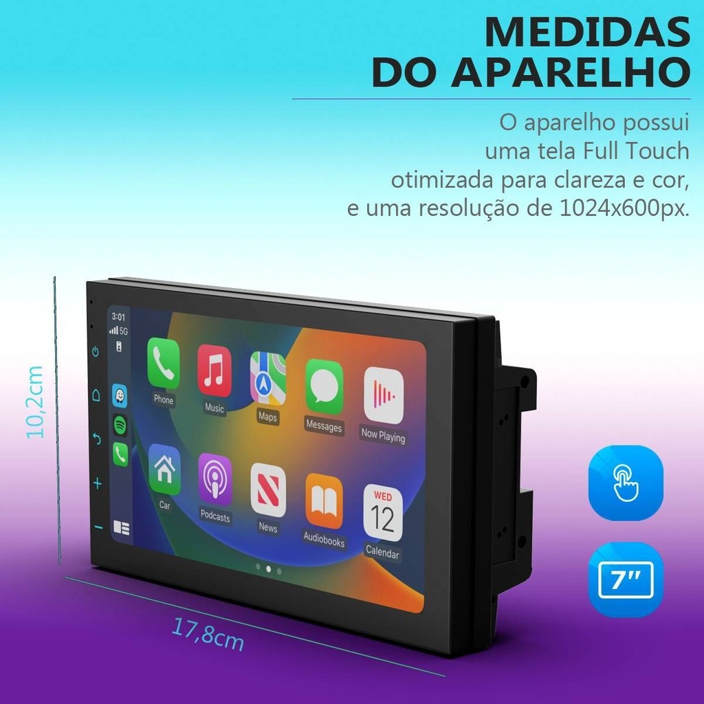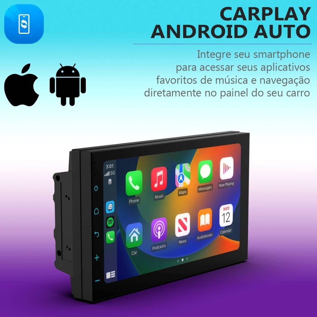 Central Multimídia 7" Carplay Android Auto Espelhamento Câmera de Ré WK70F