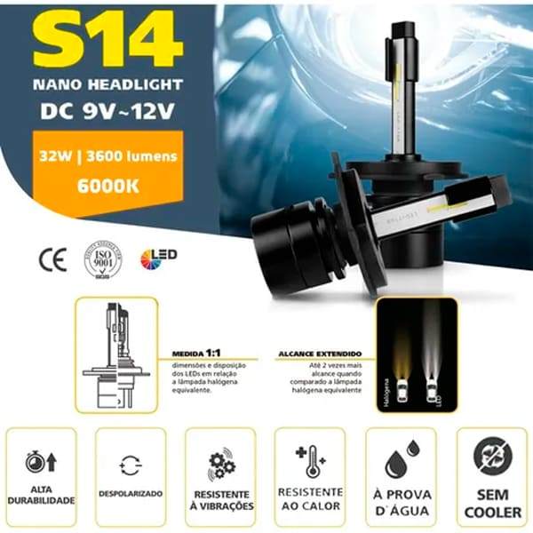Lâmpada Led Nano Shocklight S14 H1 H3 H7 H11 H16 H27 HB3 HB4