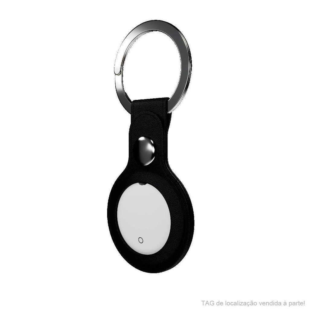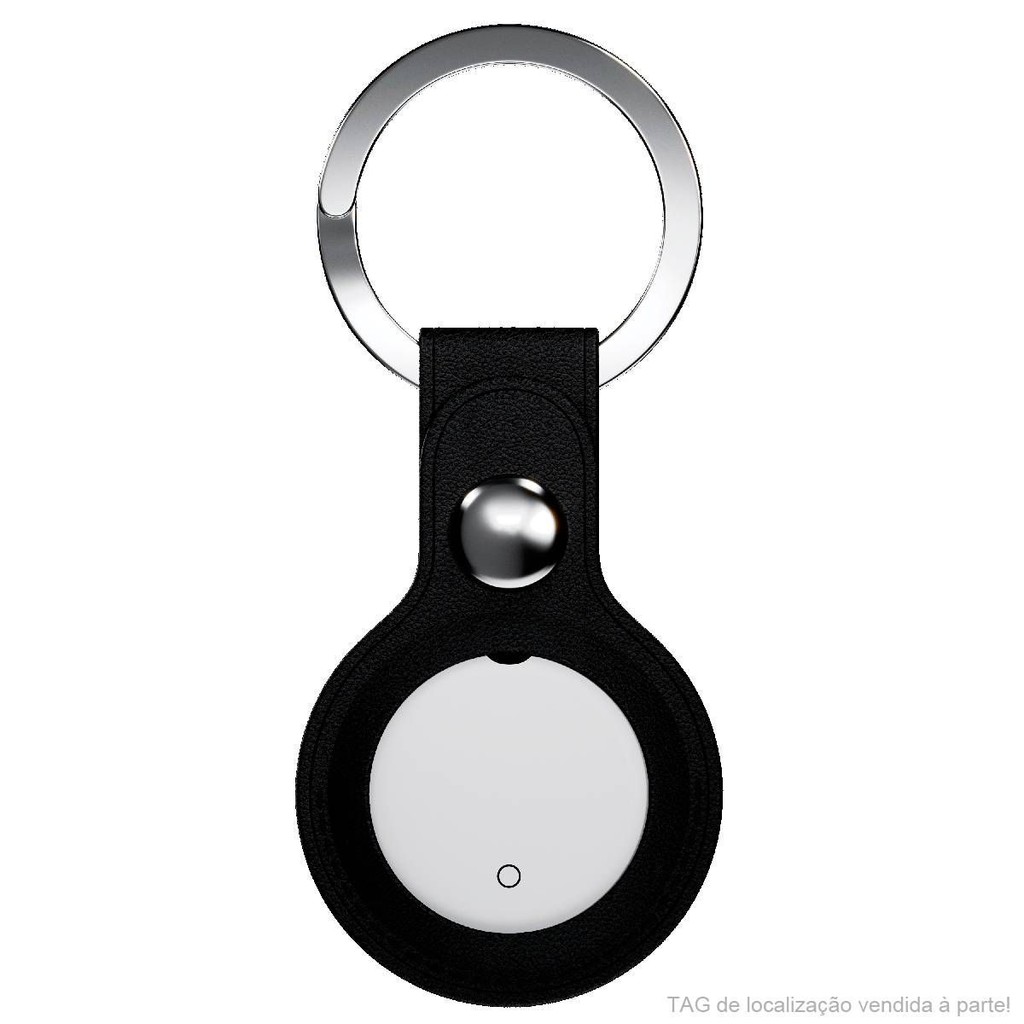 Capa de Couro para FaafTag e Airtag Chaveiro para Malas Chaves Preto