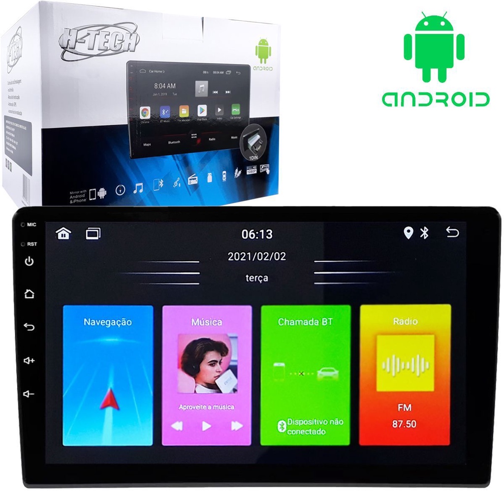 Central Multimidia 9pol 1Din 2GB 32GB Android 12 Carplay Android Auto HT-9823CA Espelhamento