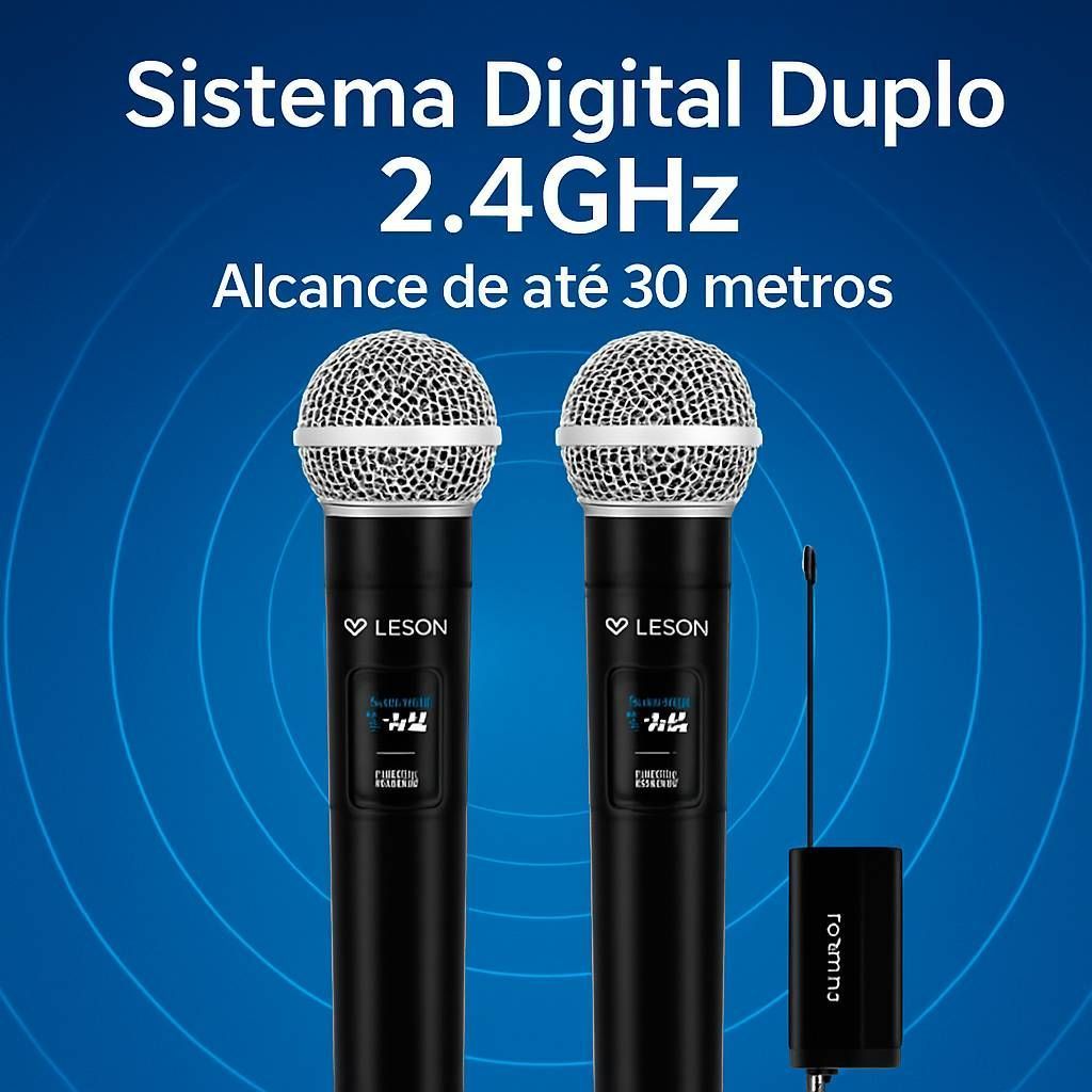 Kit 2 Microfone Sem Fio Digital Leson LS302 2.4GHz Recarregável Igreja Evento Karaokê 30m