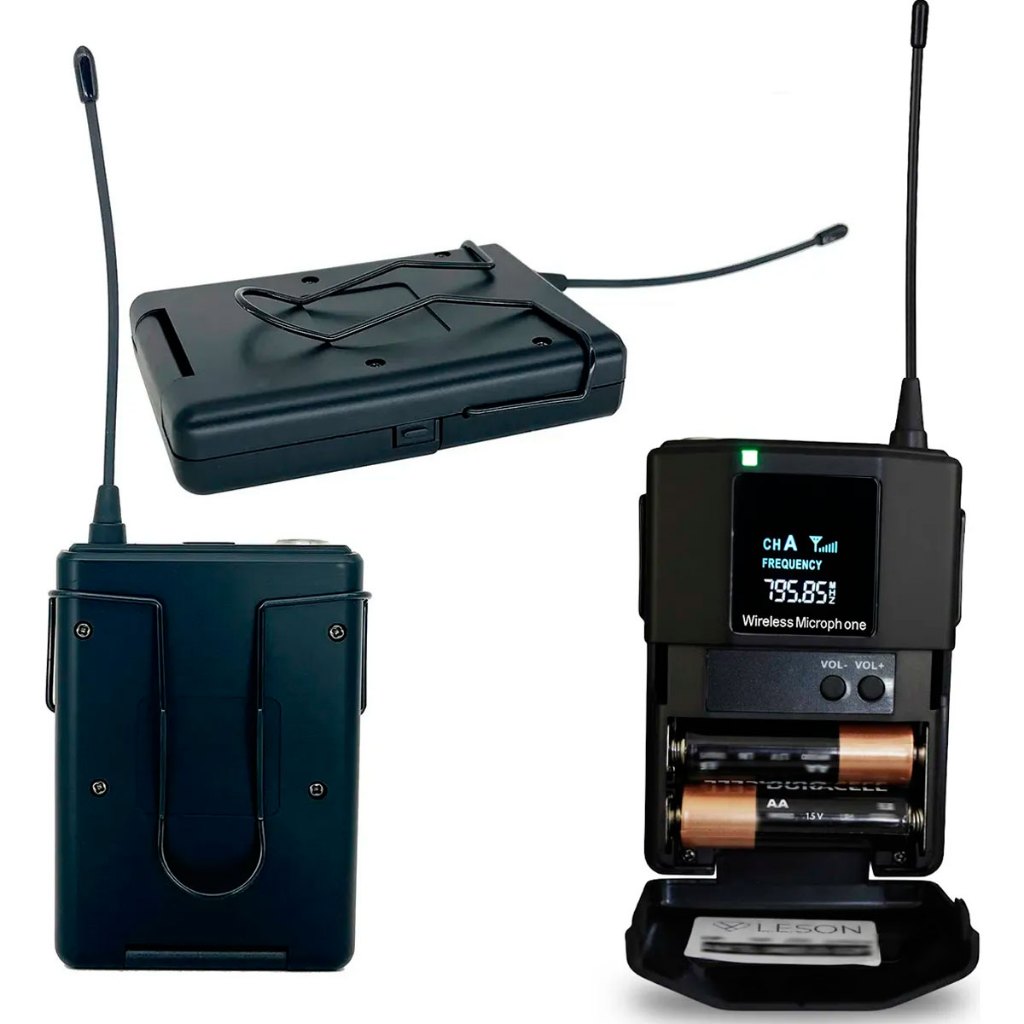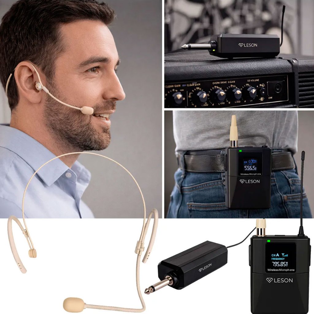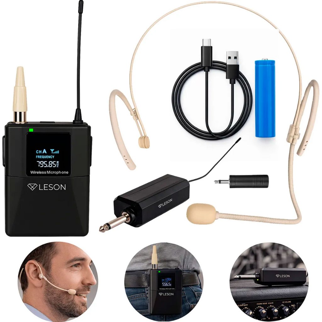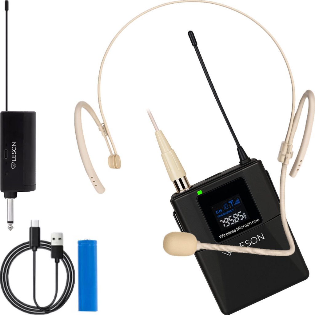 Kit 2 Microfones Headset Sem Fio Leson LS307 P10 Para Live Aula Podcast Bege