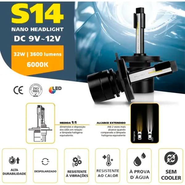 Lâmpada Super Led Mini Shocklight 32w S14 Nano H13 6000k