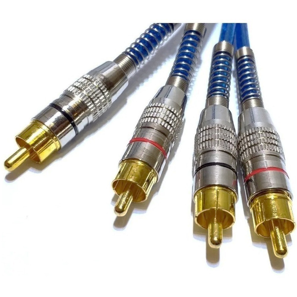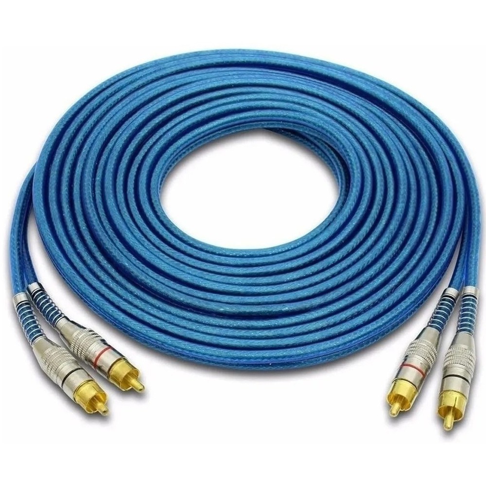 Cabo RCA 5 Metros Dupla Blindagem Cobre 5m Blindado 5mm Plug Metal Som Automotivo Conectores Duplos Banhado a Ouro Proteção Contra Ruídos Caixa Bob Paredão