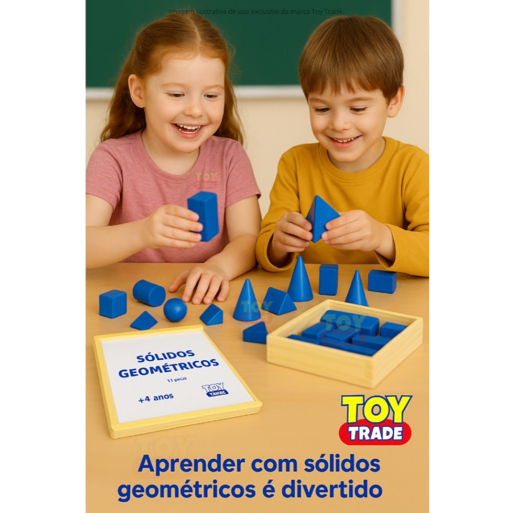 Sólidos Geométricos com 11 Peças Brinquedo Educativo Pedagógico Desenvolve Noção de Espaço