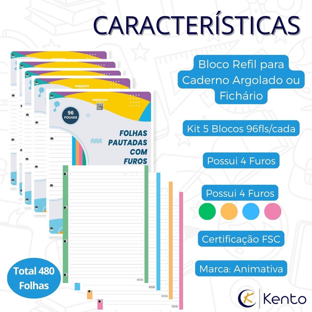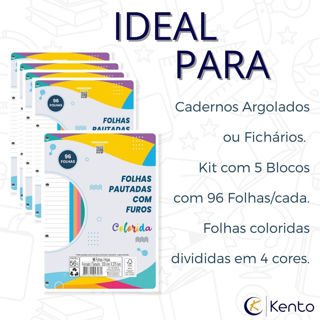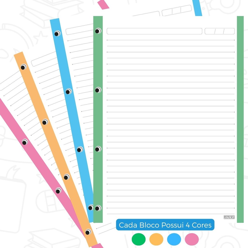 Kit Folhas para Fichário ou Caderno Argolado 480 folhas 4 Furos Coloridas A4 Escolar Universitário