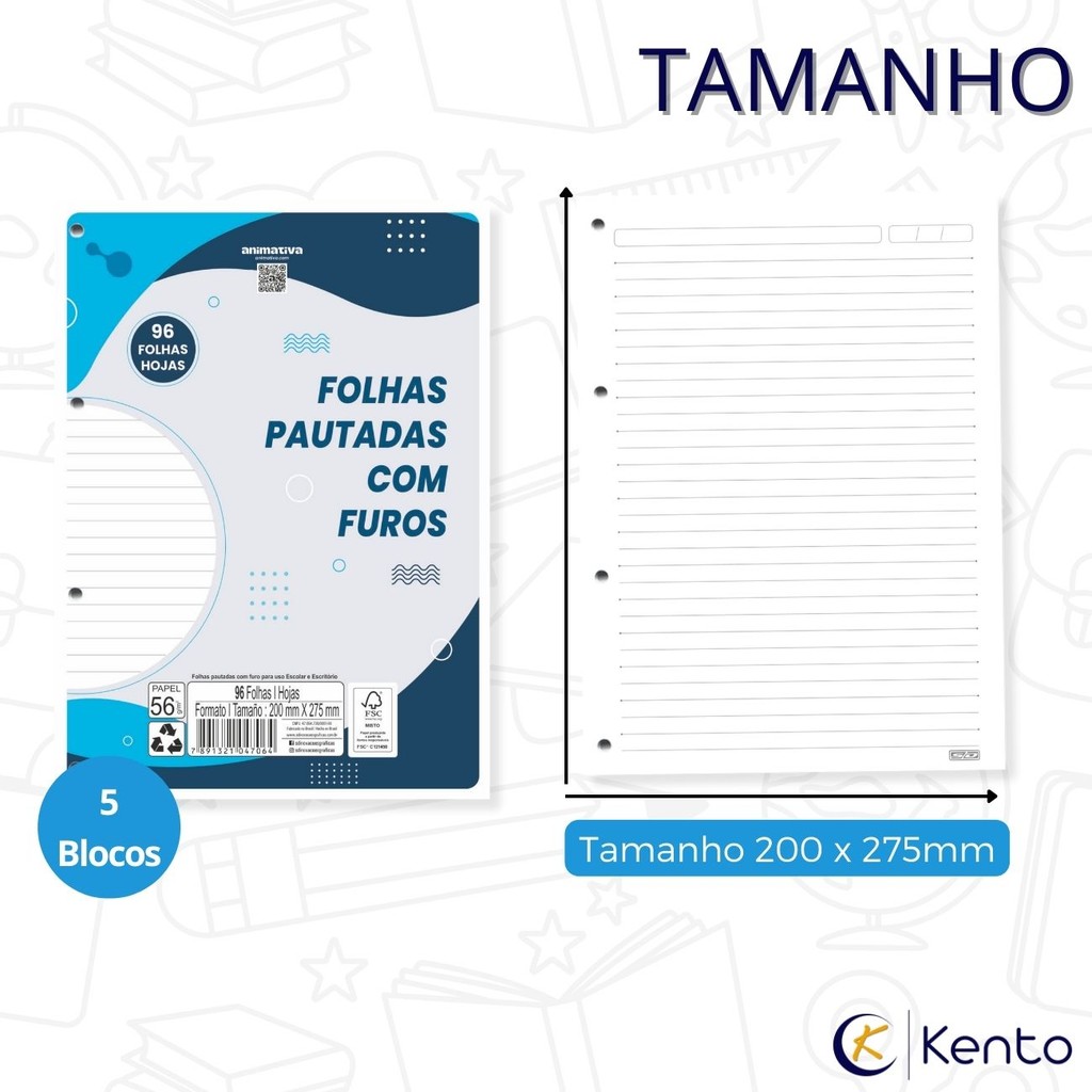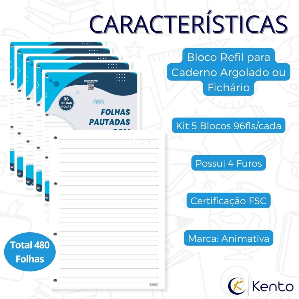 Kit Folhas para Fichário ou Caderno Argolado 480 folhas 4 Furos Branco A4 Escolar Universitário