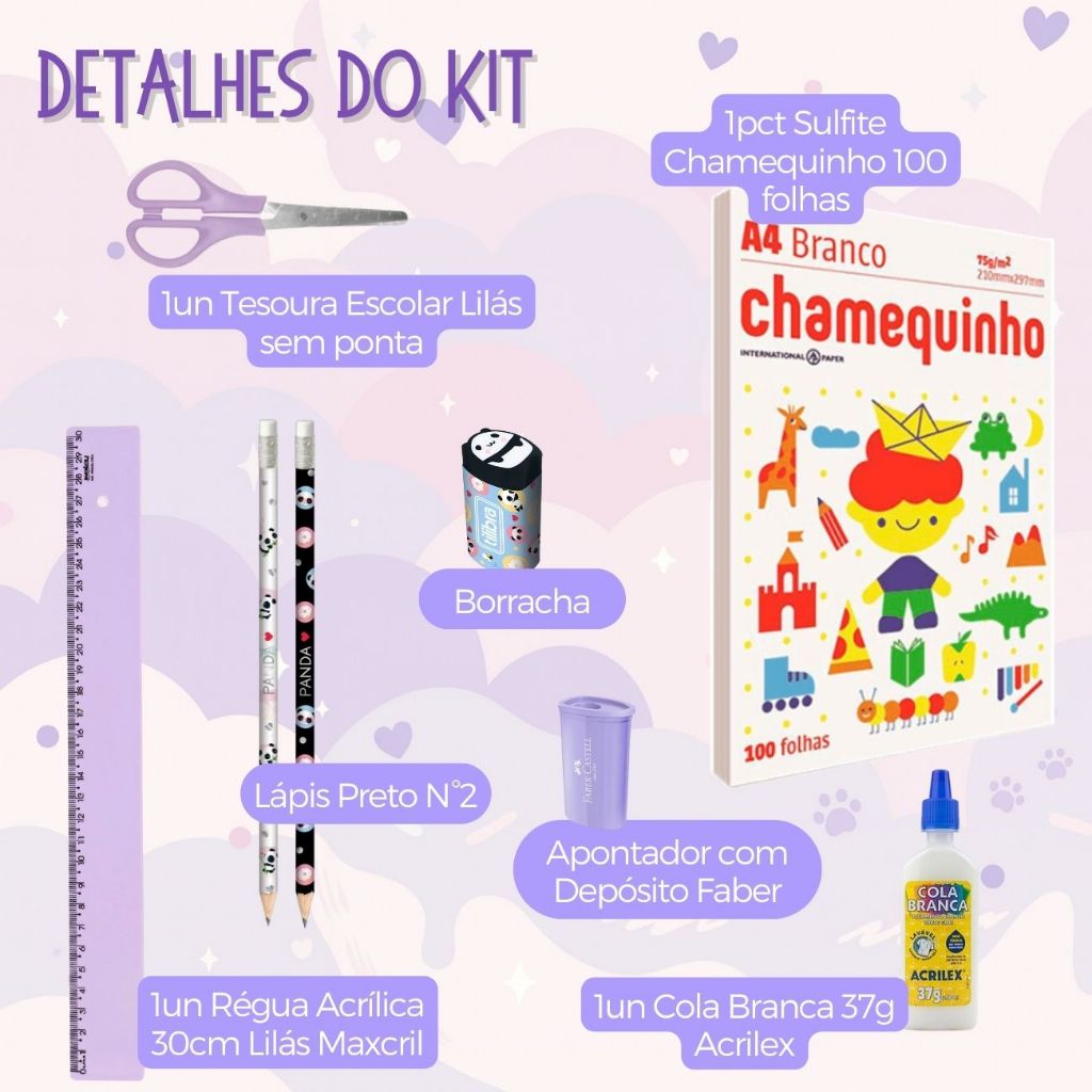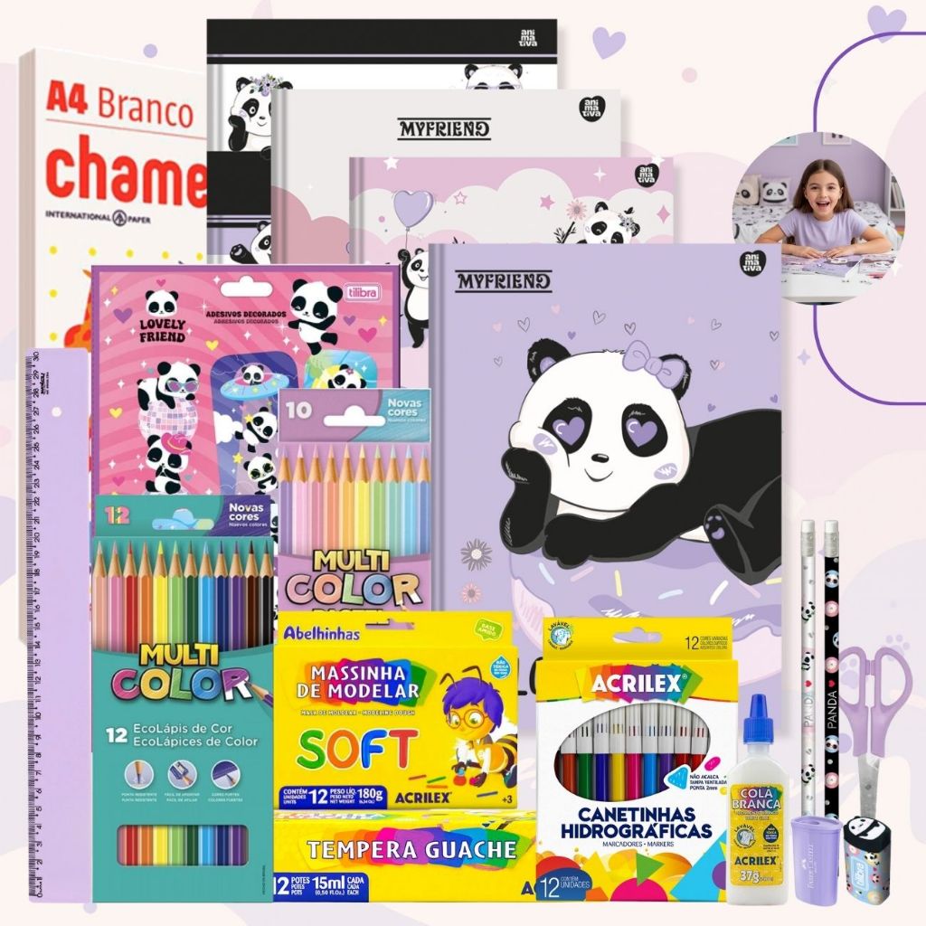 Kit Material Escolar Volta As Aulas 71itens Ursinho Panda Ensino Fundamenta Infantil Faber Acrilex