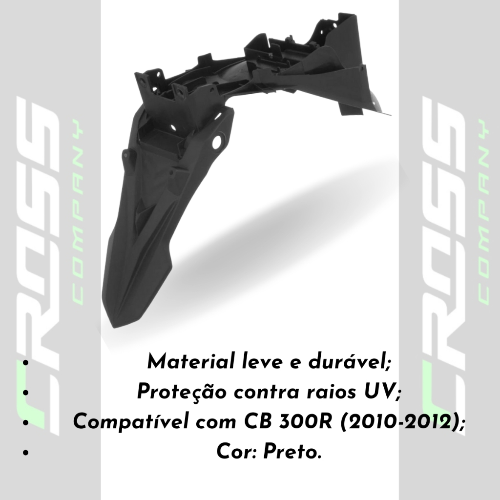 Paralama Traseiro Suporte de Placa CB 300R 2010 à 2012 ABS 100% Virgem e Proteção UV