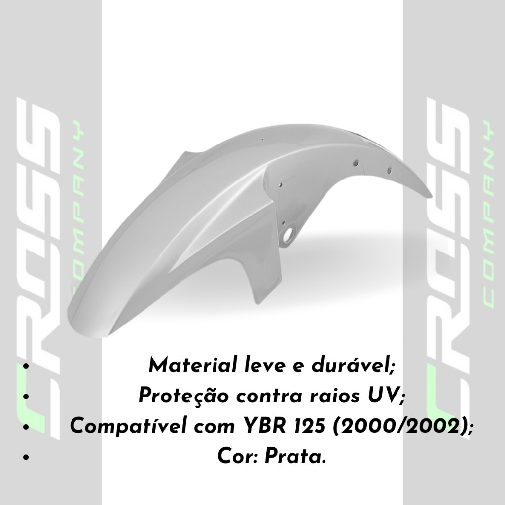 Paralama Dianteiro Compatível com Moto Yamaha YBR 125 2000 à 2002 Cor Prata ABS 100% Virgem