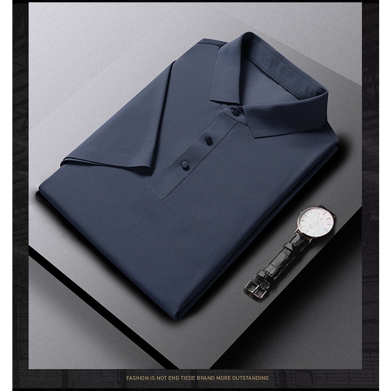 Camisa De Seda Para Homens De Negócios Leve Manga Curta Não-Iron High-End Casual POLO Sem Costura