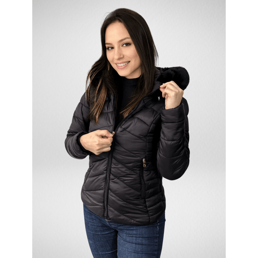 Jaqueta Casaco Blusa Feminina Bobojaco Puffer Peluciada Forrada Com Capuz Removível Macia Leve Confortável
