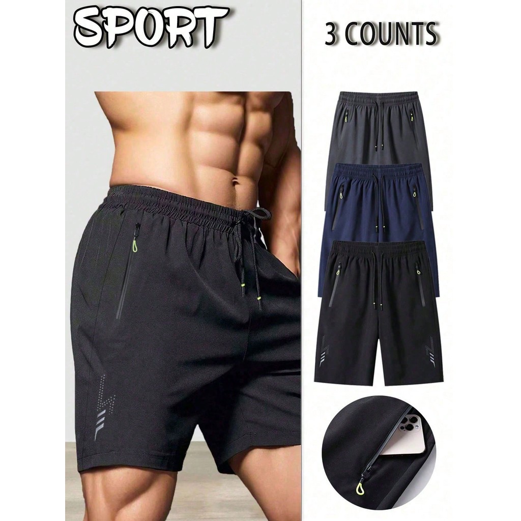 KIT 3 shorts de esportes de seda gelada shorts de comprimento até o joelho e calças largas de secagem rápida