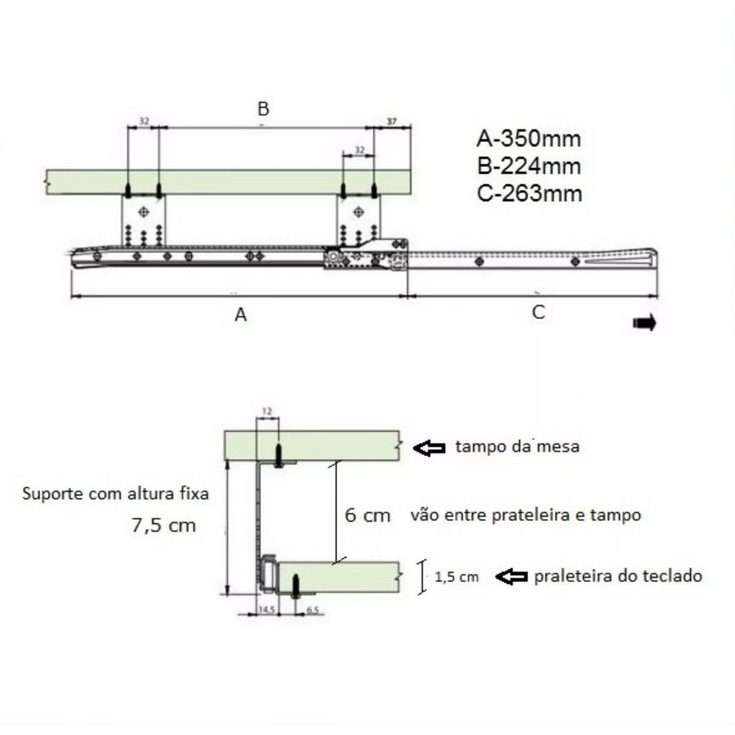 Suporte para Teclado Computador Retrátil com Corrediça kit completo para instalar Cor Avelã Mobilux Móveis