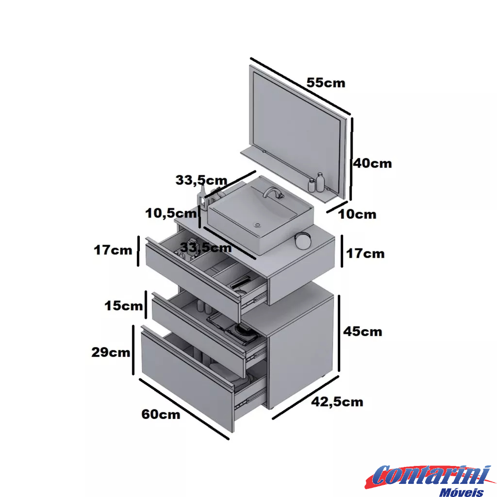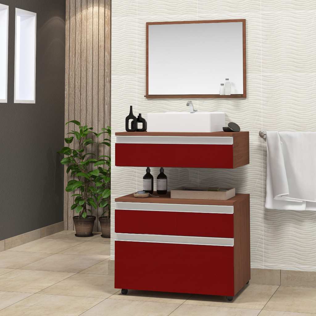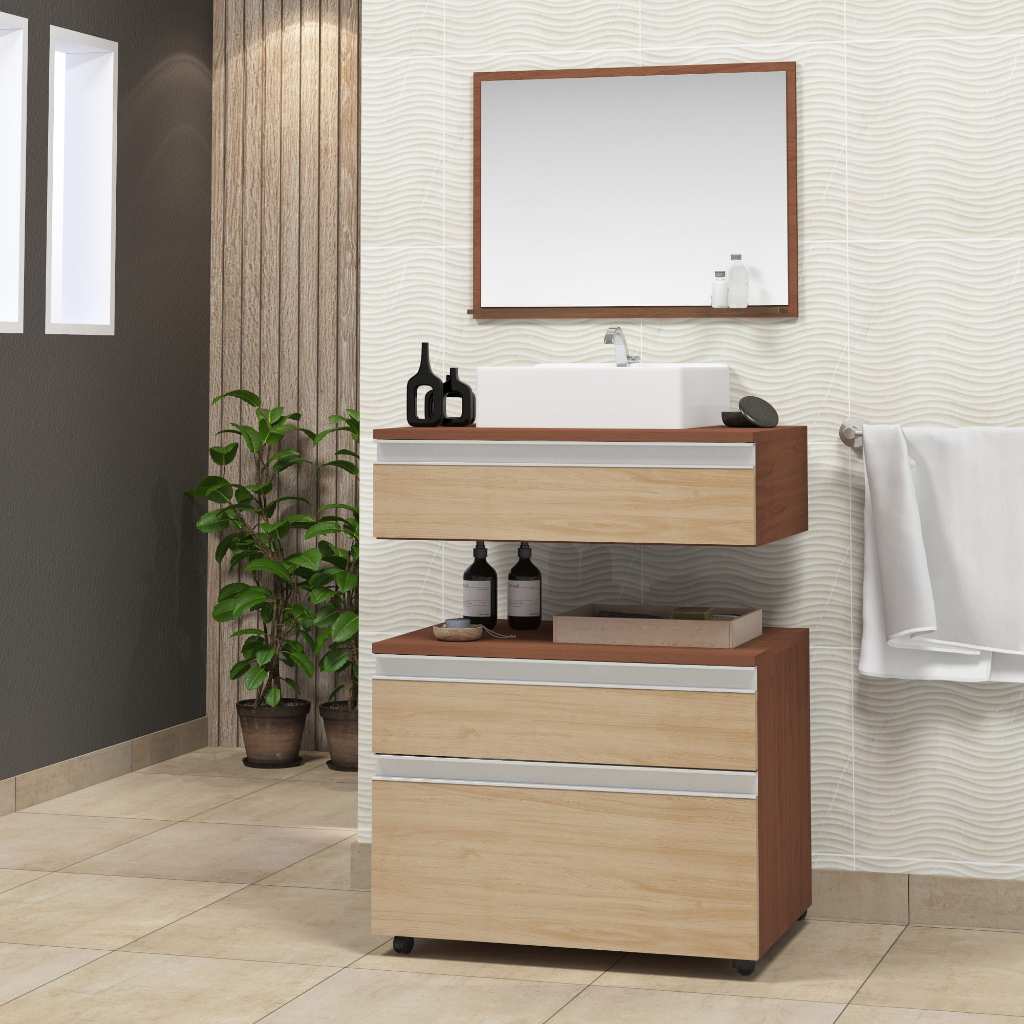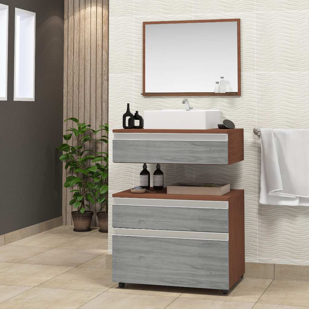 Conjunto safira 60cm completo gabinete banheiro com cuba e espelheira (com espelho) MARTICONI